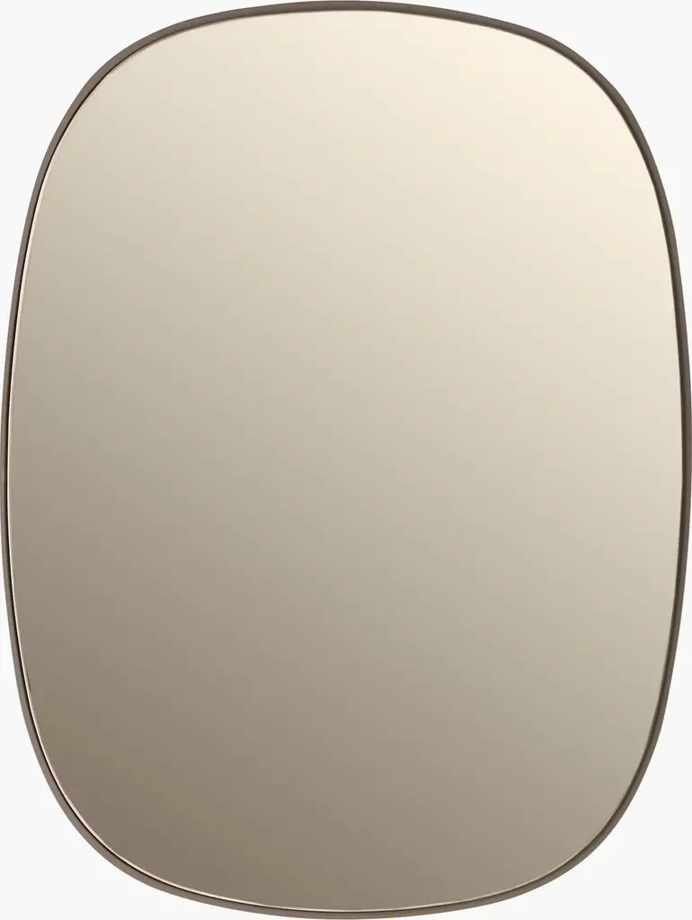 Featuring a subtly curved steel frame and choice of a clear or tinted mirrored glass pane, the Framed Mirror (2016) by Anderssen and Voll adds a sleek aesthetic to any space. Can be used individually or in multiples. Made in Vietnam.