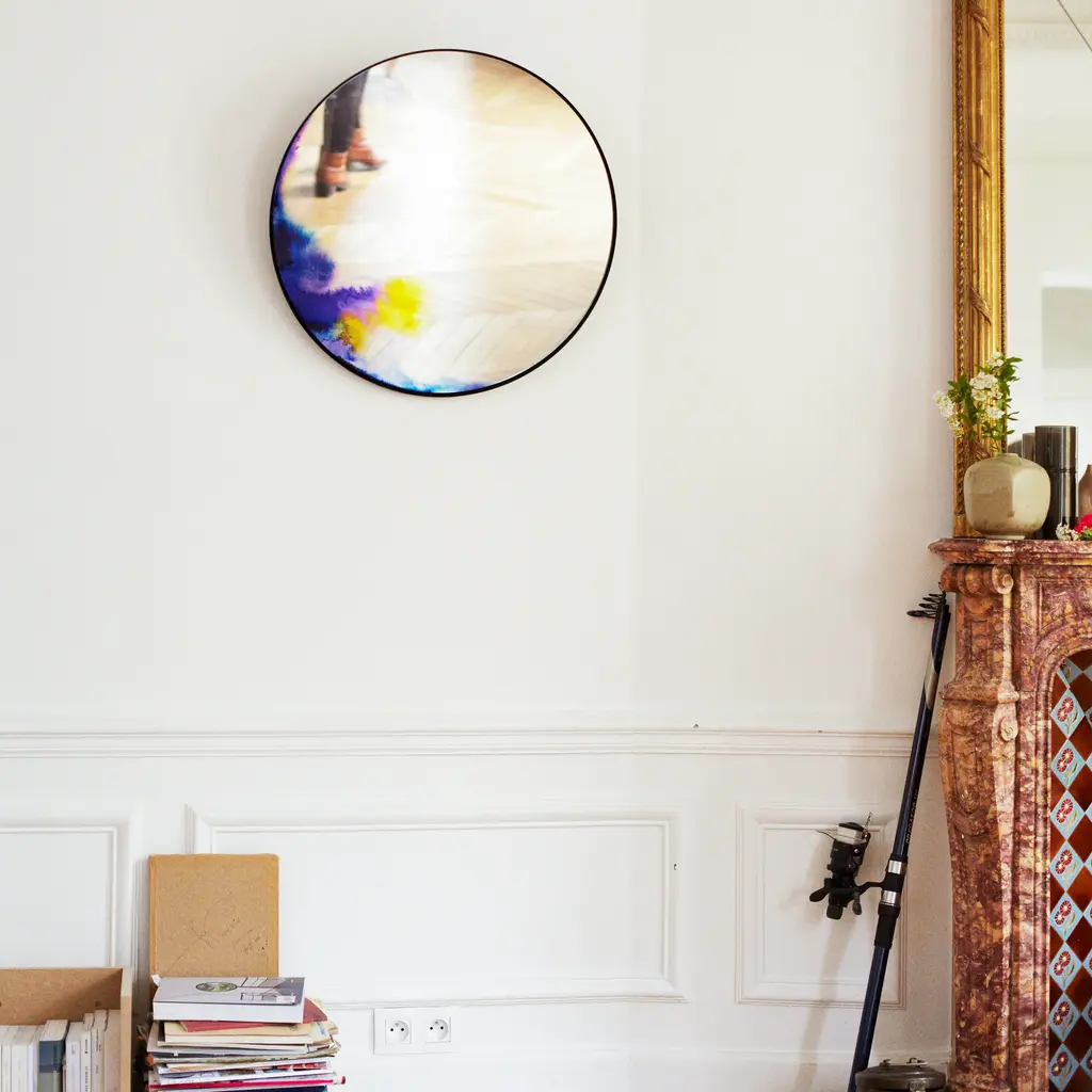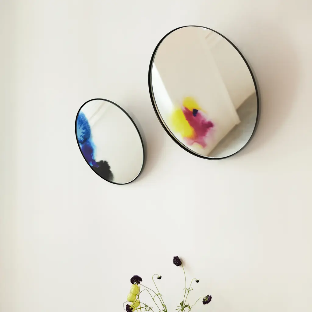 Reflect beauty, reflect love Inspired by the oxidation of antique mirrors, the Francis Mirror from Petite Friture brings striking, well-accented style for your well-appointed home. Showcasing a round design crafted from aluminum, this mirror features graphic printing in various colors for an unexpected and playful touch. The back of the mirror, slightly convex, is suspended through the center, which allows the mirror to fall forward such as with Venetian mirrors. Ideal for a variety of interior spaces, install this mirror in a chic powder room for a beautiful accent above a sink, or place above your living room seating area to provide some reflection of natural light to effortlessly brighten up your home. Why We Love It: