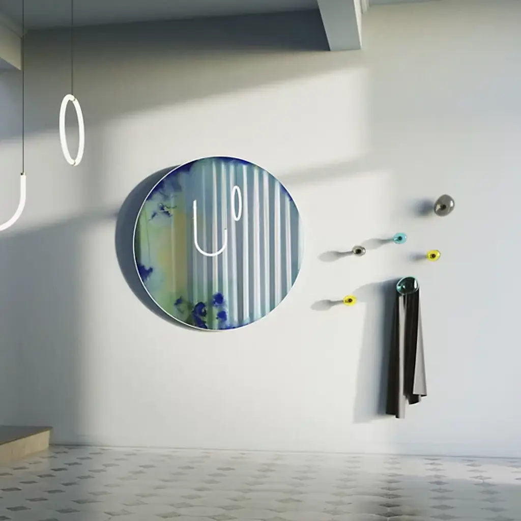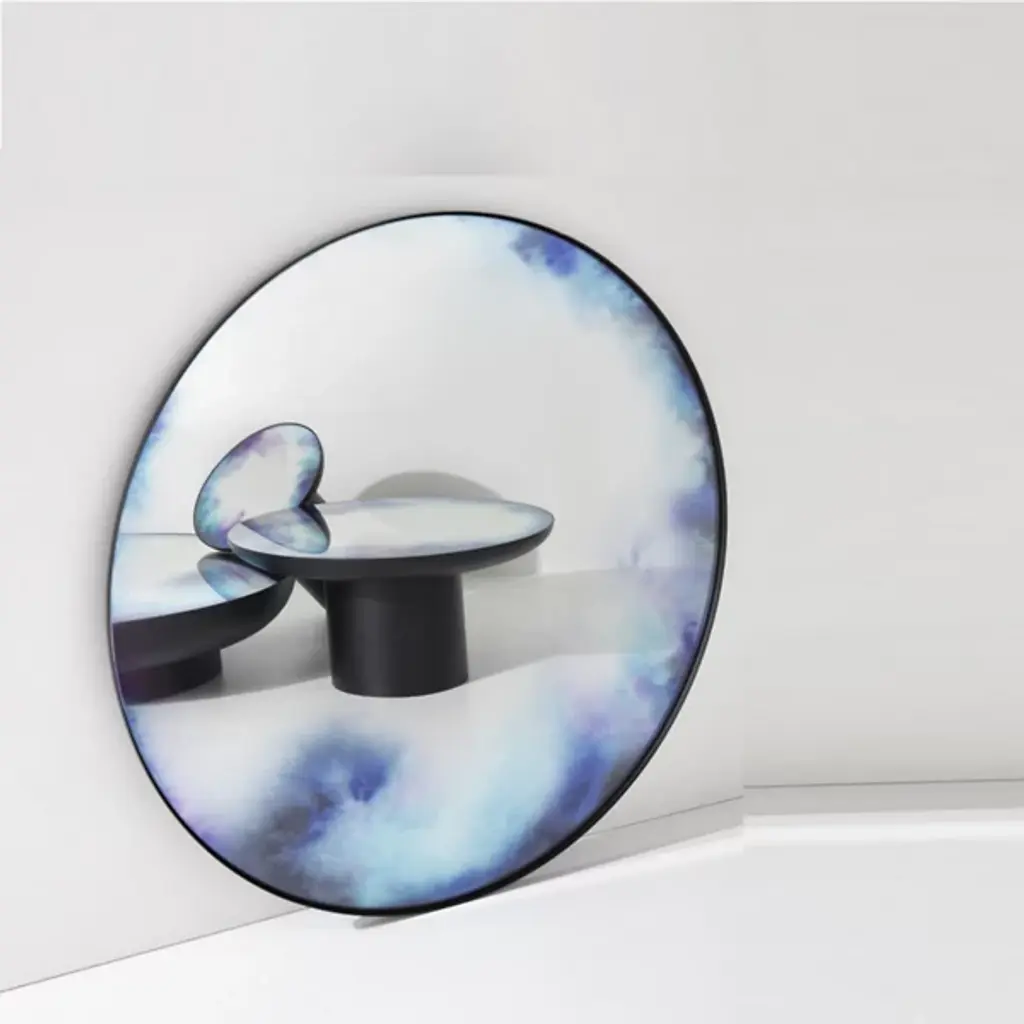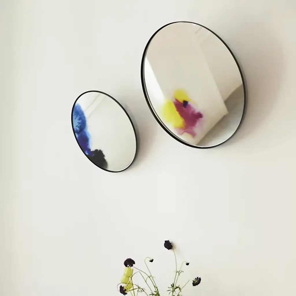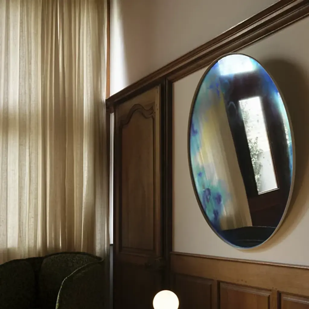 The Francis Mirror by Petite Friture is a functional work of art from Parisian designer Constance Guisset. Inspired by a visit to a painter’s studio, this designer was captivated by the beauty of moving pigments swirling off of a paintbrush dipped into water. Each mirror pattern is hand-painted and digitally altered to achieve a semi-transparent, multi-layer, and tinted aesthetic. Evocative of old Venetian mirrors, both the distinctive color haze and slightly convex back, allow this piece to create a dreamy scape with a great sense of perspective.