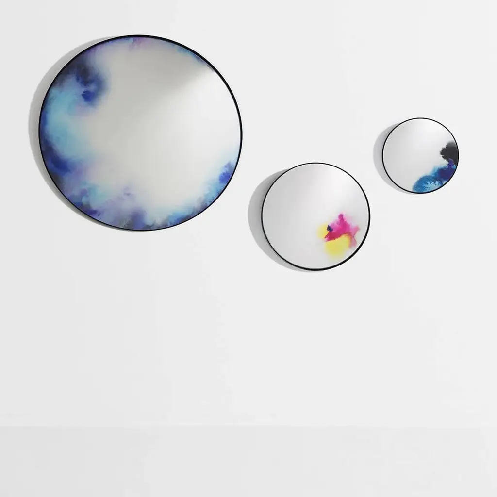 Inspired by the oxidation of antique mirrors, the Francis Mirror from Petite Friture brings striking style to your well-appointed home. Showcasing a classic round design, this mirror features graphic printing in various colors for uniquely playful touch. Slightly convex, the back is suspended through the center, which allows the mirror to fall forward such as with Venetian mirrors. Ideal for a variety of interior spaces, install this mirror in a chic powder room above a sink, or place above your living room seating area for reflection of natural light. Highlights