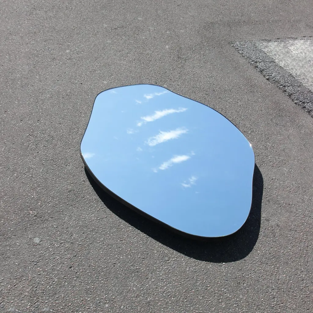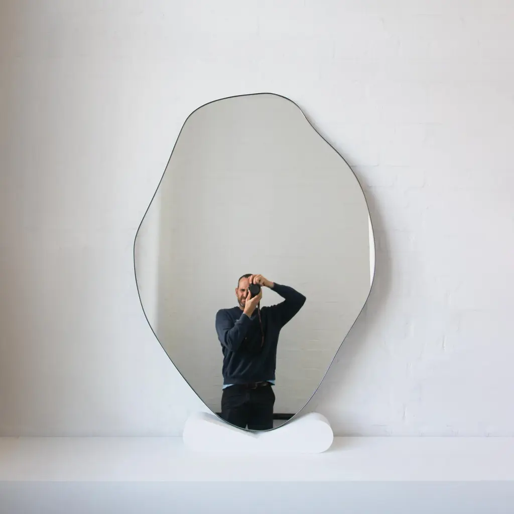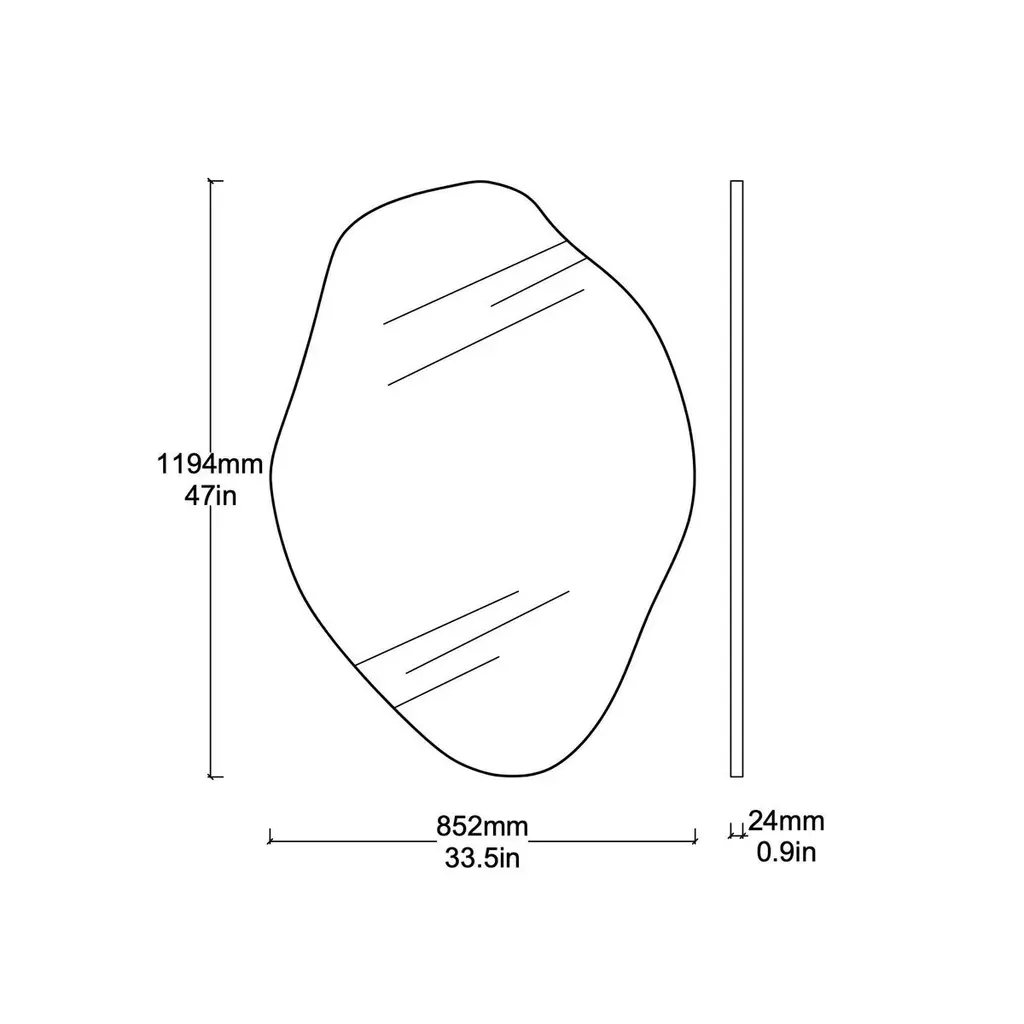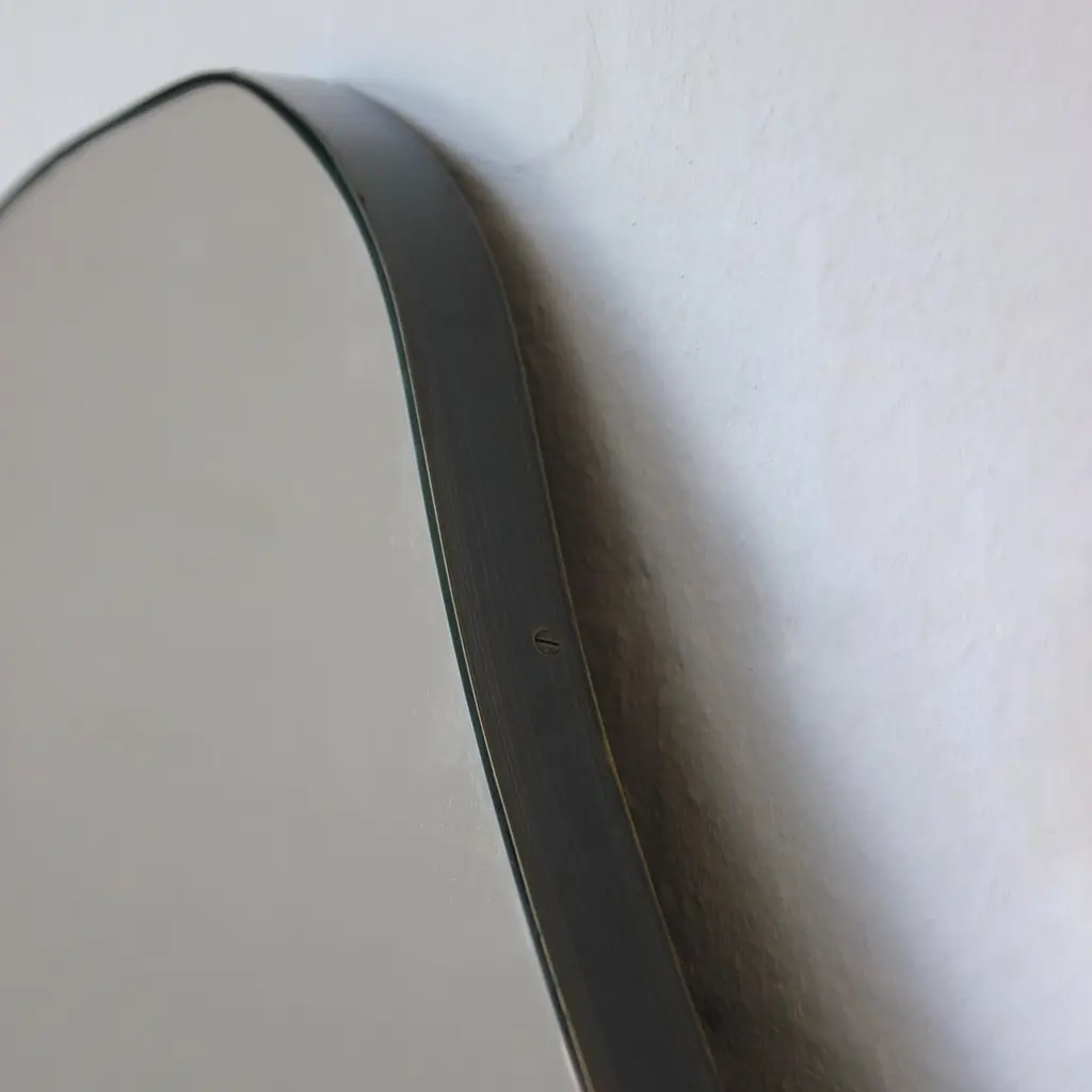 Modern freeform organic shaped mirror with a minimalist bronze patina brass frame. Designed and handcrafted in London. This mirror is fully customisable.Dimensions: H 119.4cm x W 85.2cm x D 2.4cm / H 47in x W 33.54in x D 0.95inOur mirrors are designed with an integrated French cleat (split batten) system that ensures the mirror is securely mounted flush with the wall.Note that this is a handcrafted mirror that may have slight variations in shape, which embrace the irregular characteristics of its organic inspiration.The Neska™ signature bronze patina finish of our frames is a highly skilled and handcrafted process. Carried out by our talented craftsmen, this artistic finish is created from the base metal itself to achieve the natural look of aged brass. This makes the finish of each frame original and unique as no two frames can be identical. Any sample or images provided to obtain your approval on the desired finish or on our website or any other promotional material are therefore for guidance only.Shipped safely and insured worldwide. All our mirrors are made on demand. Fabrication lead time for this particular mirror is approximately 4 to 5 weeks. Our mirrors are always shipped by courier express. Shipping via courier express typically requires 1 to 2 days to the UK, or 2 to 7 days outside the UK depending on the destination.Available options:- mirror tint: silver, bronze, black, rose gold / peach or blue- frame finish: brushed brass, polished brass, bronze patina, black- bevelling- back-illumination creating a halo effect- demister pad Please contact us for a quote for any bespoke specifications or added options.ORDERS OF MULTIPLE MIRRORS OF THE SAME TYPE: Please contact us to receive a Packing and Shipping quote when ordering multiple mirrors of the same type. An order for multiple mirrors of the same type may not be accepted without extra packing and shipping fees. Thank you.