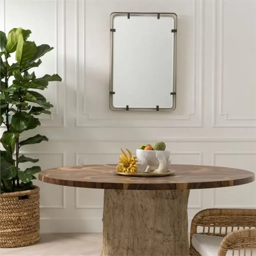 Minimal and modern, our Fremont features unique steel hardware and is perfect for the client who wants simplicity with a twist. The corners of this rectangular mirror are rounded, softening its aesthetic, while two tabs that adorn each side, are bold details that give it true style.