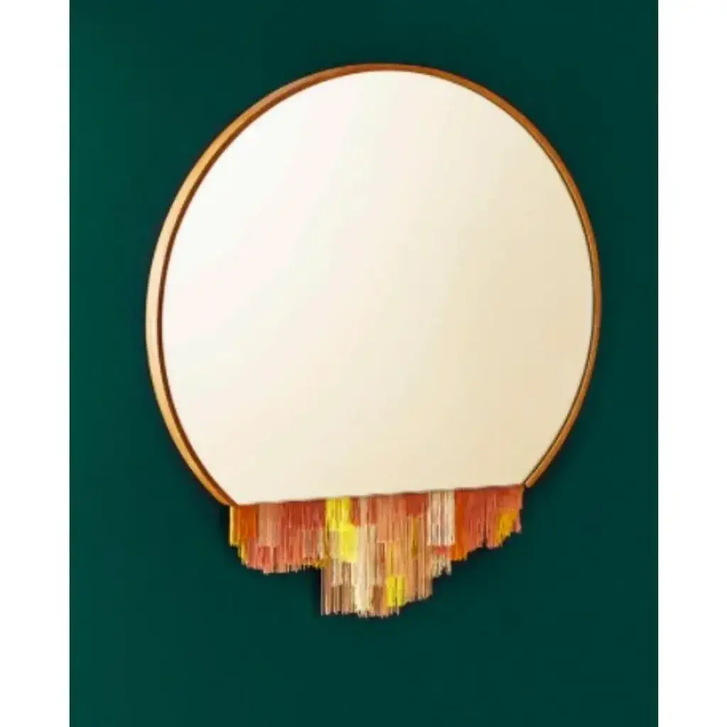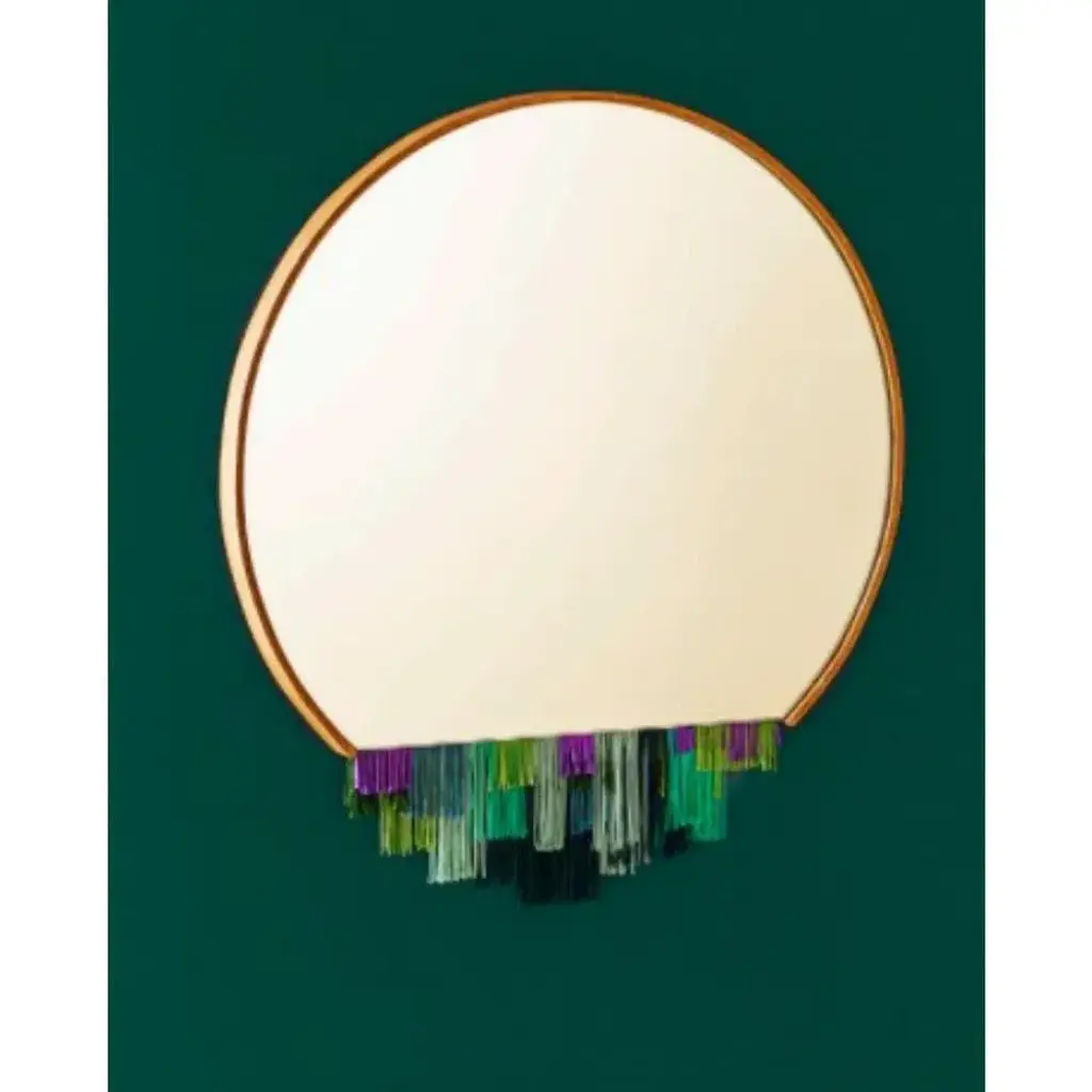 Fringe mirror orange by tero kuitunen material: oak, glass mirror, textile fringes. Dimensions: d53 x w53 x h3 cm also available : different colors. Do you remember the old fabric lamp shades with fringe edges? i love how they evoke the urge to run your finger through the rim. In these pieces i was exploring materials that invite you to touch them.