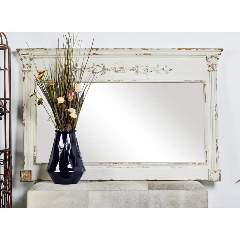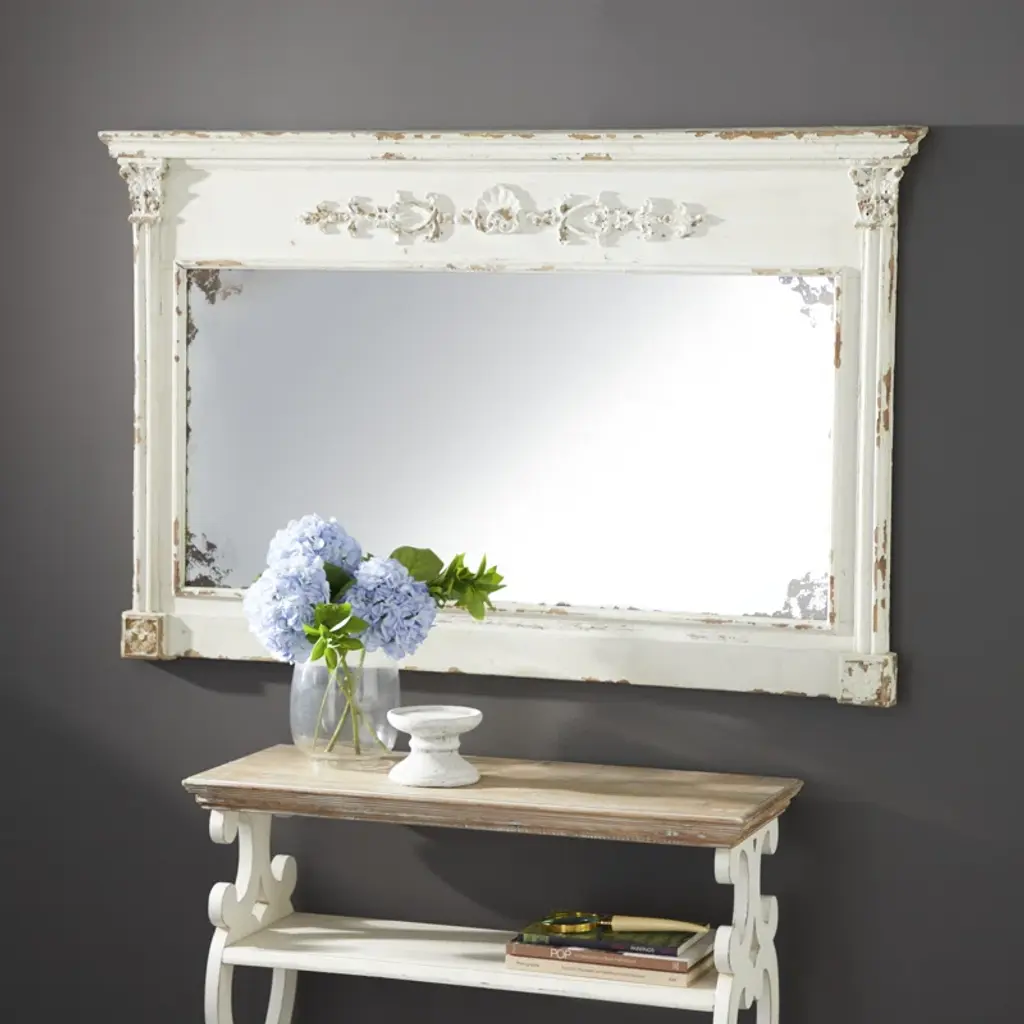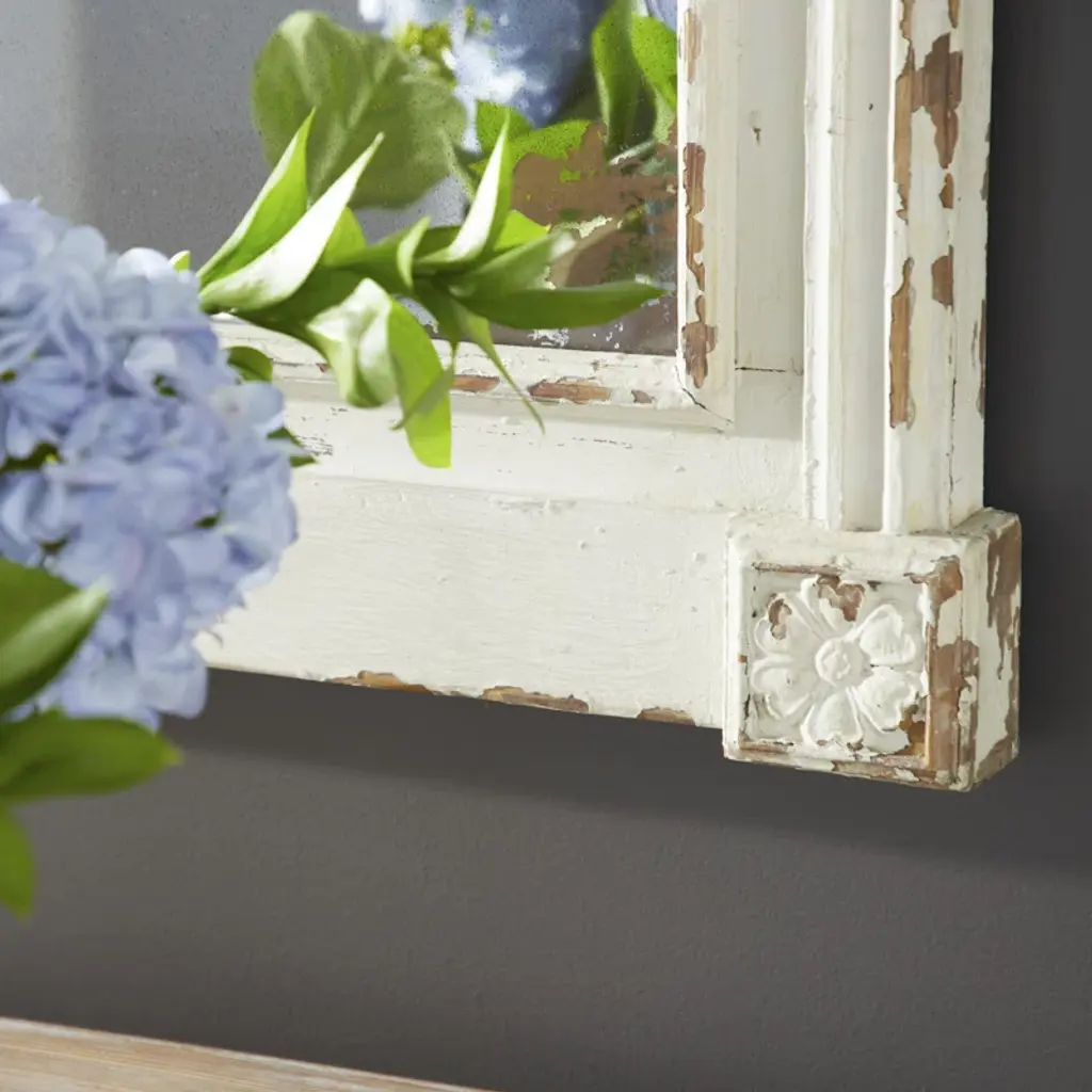 Fuentes Wood Carved Floral Cream Wall Mirror With Distressing