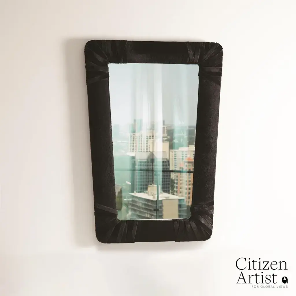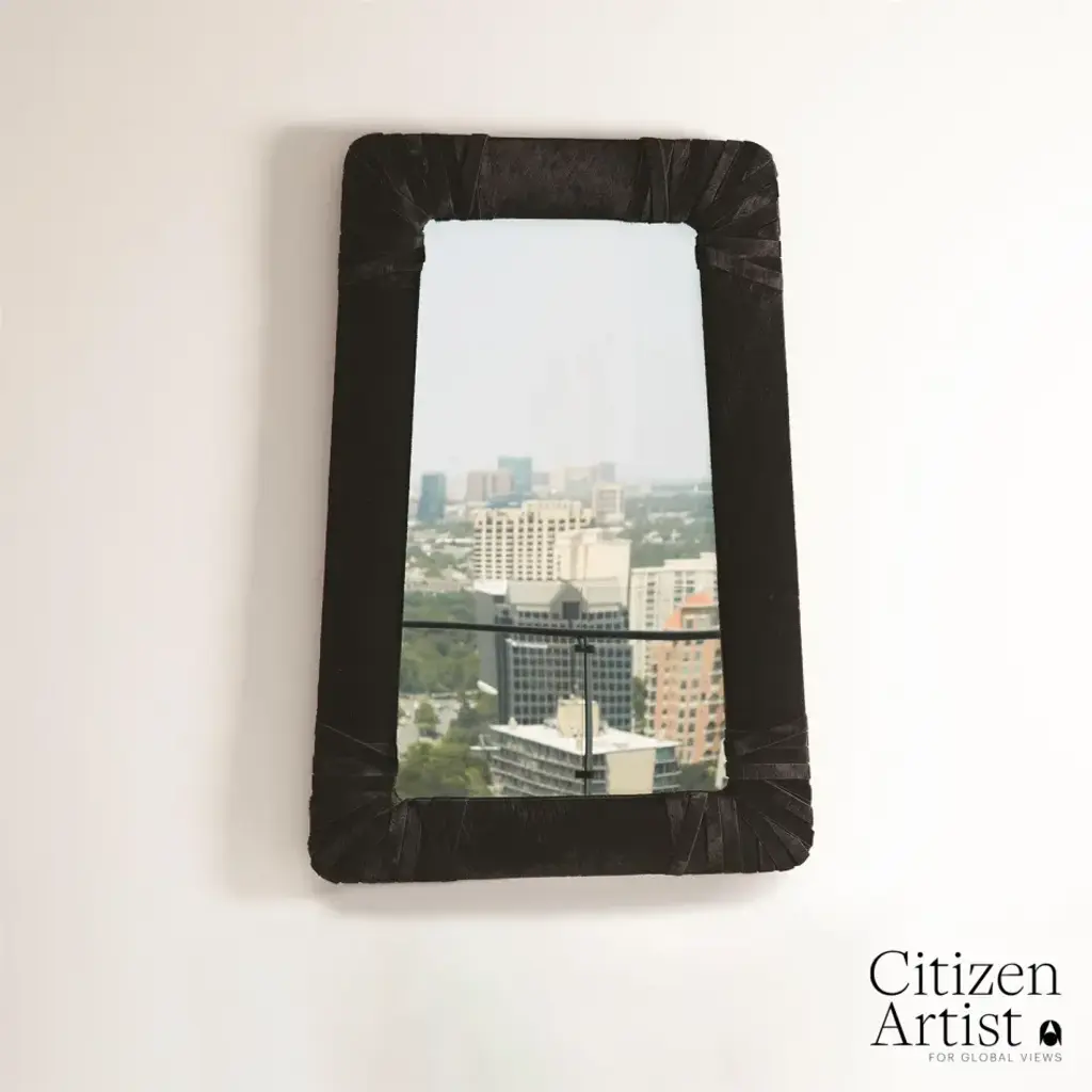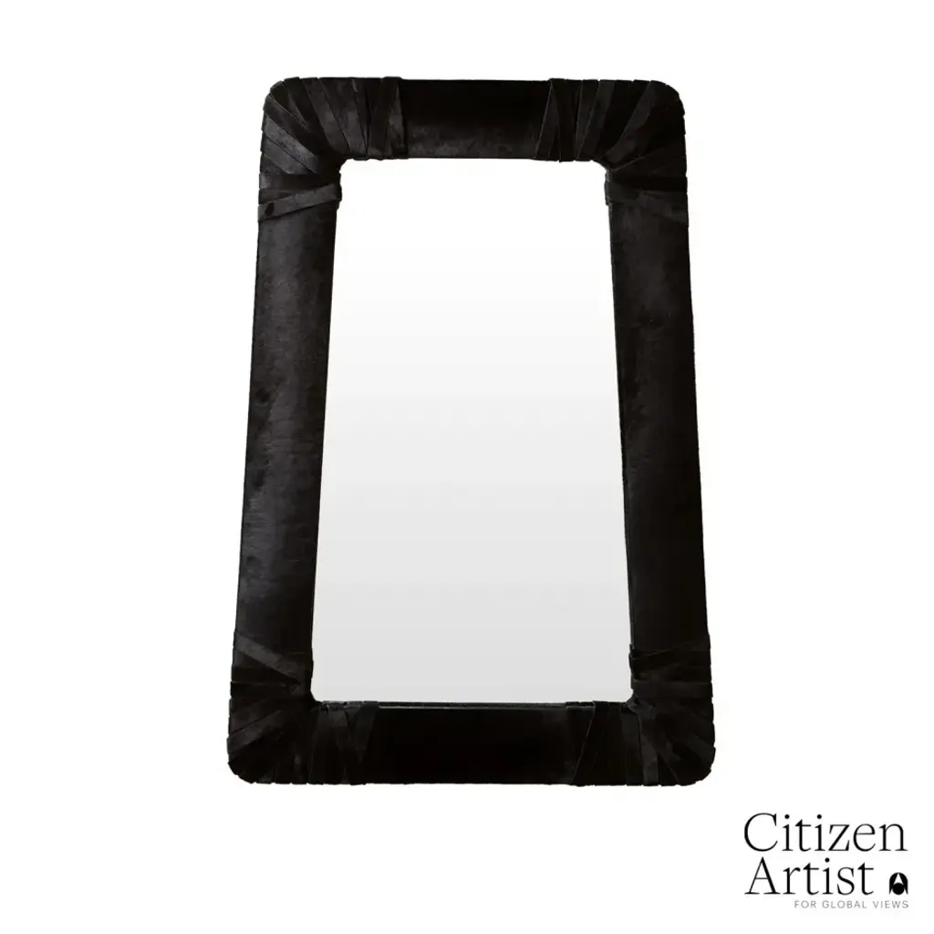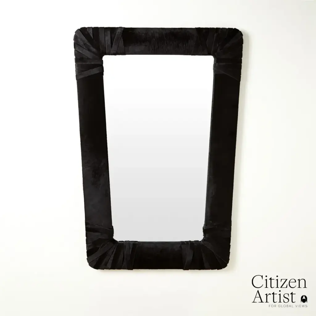 This wonderfully proportioned mirror is upholstered in a luxurious hair-on-hide with hair-on-hide wrapped corners. The tapered shape of the Gabriel mirror can be hung with either the wide or the narrow end at the top. Available in white and black hair-on-hide. From a fashion forward perspective, Global Views offers accessories, furniture, statement lighting, and an assortment of rugs and mirrors to add beauty and joy to your home.