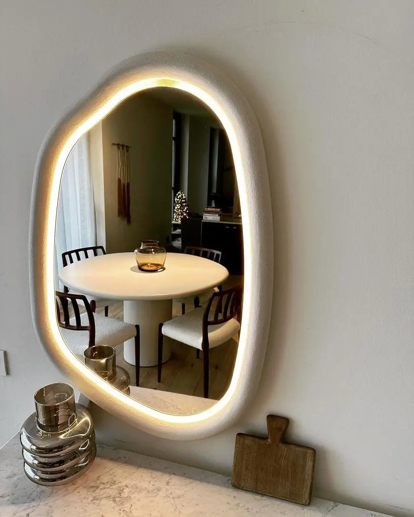 Gaelle mirror by Philippe ColetteDimensions: D 60 x H 90 cmMaterials: mineral lime plaster.With or without indirect lighting.All shapes and sizes can be customized. Wide range of colors.