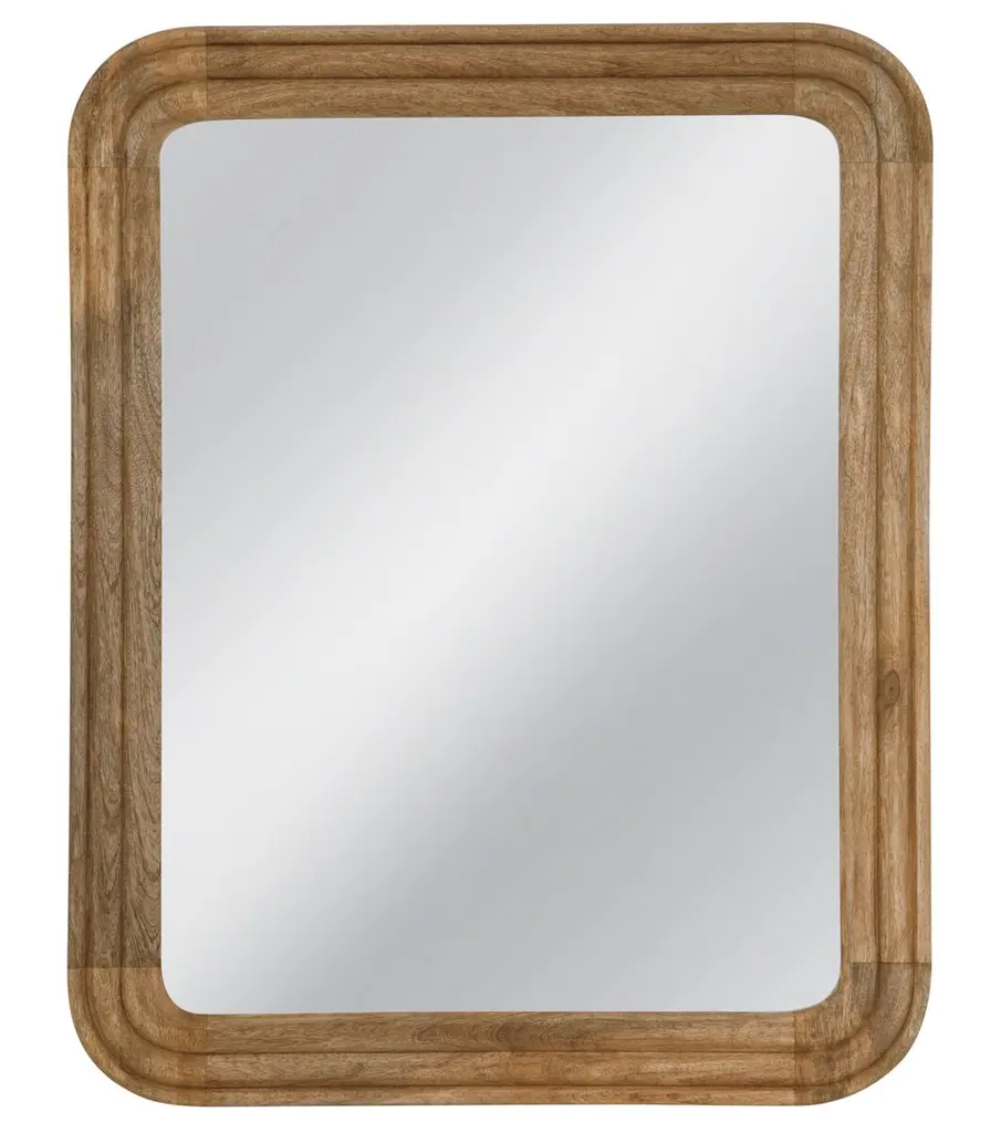 The Gage Wall Mirror presents a natural brown wood frame that exudes a rustic style. Its design features rounded corners and layered wooden outlines that add a sense of depth and warmth to the piece. The wood''s natural grain and color variations enhance the mirror''s organic appeal, making it a charming addition to interiors that celebrate raw, natural textures and a cozy, rustic aesthetic.Features:Natural brown wood frame exuding rustic styleRounded corners and layered wooden outlines create depth and warmthNatural grain and color variations enhance the mirror''s organic appealPerfect for interiors that celebrate raw textures and a cozy rustic aesthetic