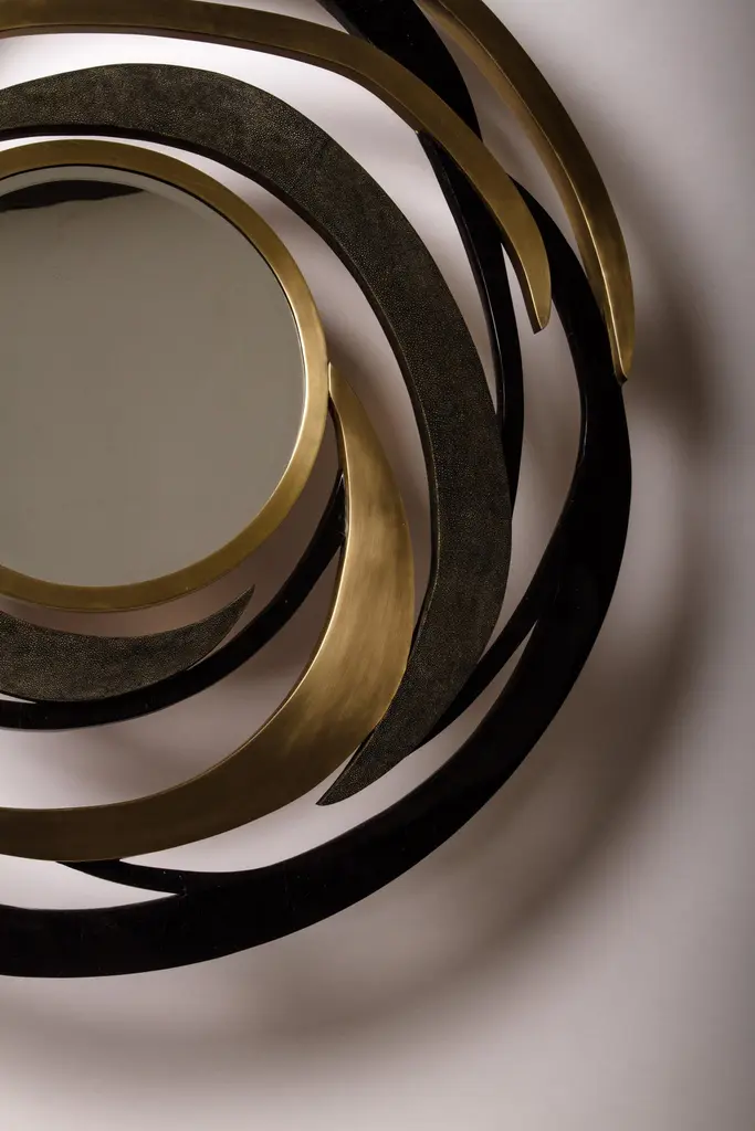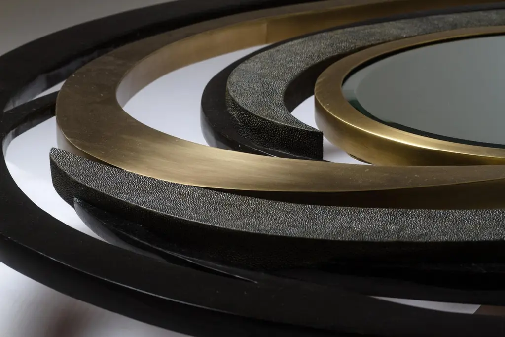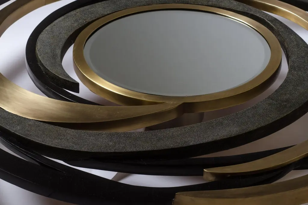 Galactic Mirror In Coal Black Shagreen, Black Pen Shell And Brass By Kifu Paris