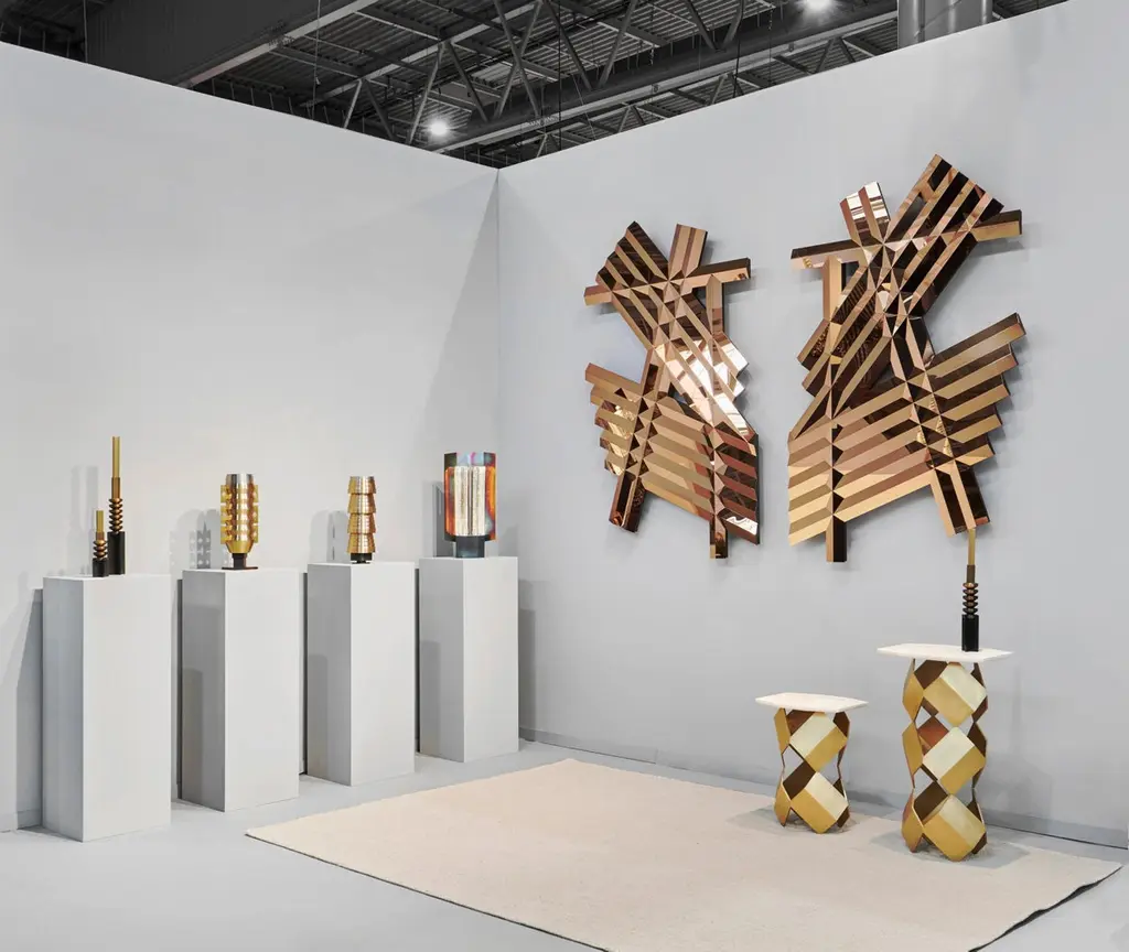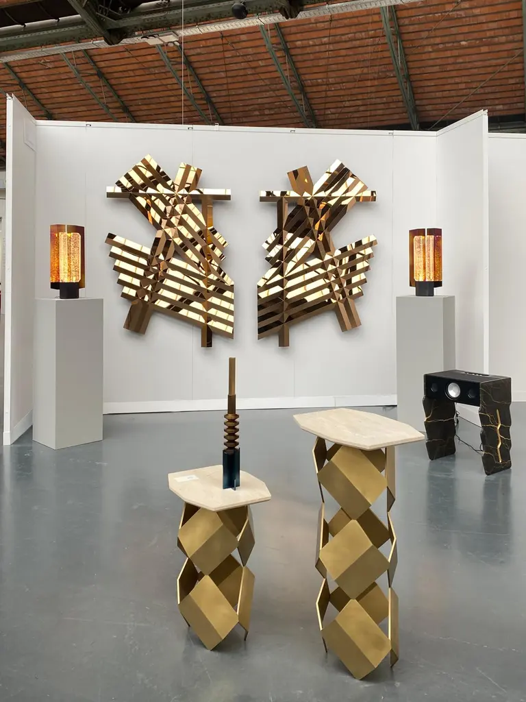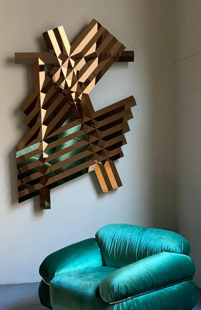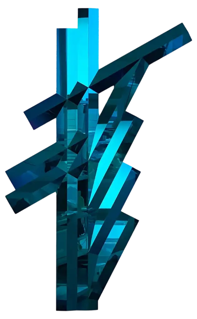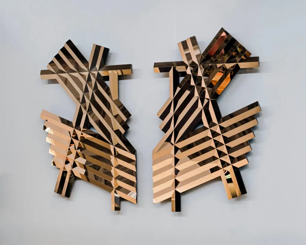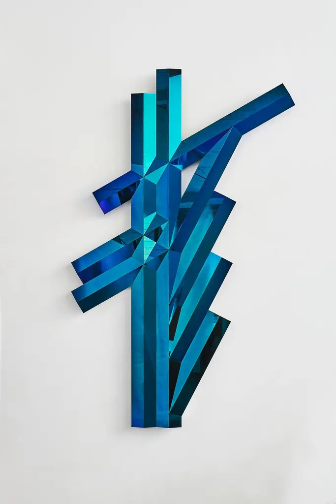 Galactica I Blue Mirror Sculpture by SB26Dimensions: W 92 x D 10 x H 148 cmMaterials: Stainless Steel, Blue Finishing.Galactica is a visual vocabulary, inspired by both retro-futurism and architecture, developed by Samuel. Wall sculptures and mirrors, these break down space like a 3-dimensional kaleidoscope, like a mesmerizing geometric abstraction.In this symmetrical arrangement, the 2 rooms redefine the space in an orderly way, although their composition is each asymmetrical. The idea is to oppose forces that balance each other.SB26 is the brand created in 2018 by the designer Samuel Accoceberry and the blacksmith Bruce Cecere. This birth originates in the desire of Bruce Cecere to design and present an exceptional object during a program of co-creation Craftsman / Designer.For this, he chooses Samuel Accoceberry, renowned designer not only for his collaborations with major brands but also for his concern to promote the great know-how and their authors. Together, they explored the limits of metal work, such as goldsmiths, to create the line of luminaires Moon which one of the pieces was presented at the Milan Salon in 2018.To continue their collaboration and develop new projects, they create their joint signature SB26 (Samuel Accoceberry & Bruce Cecere Studio).