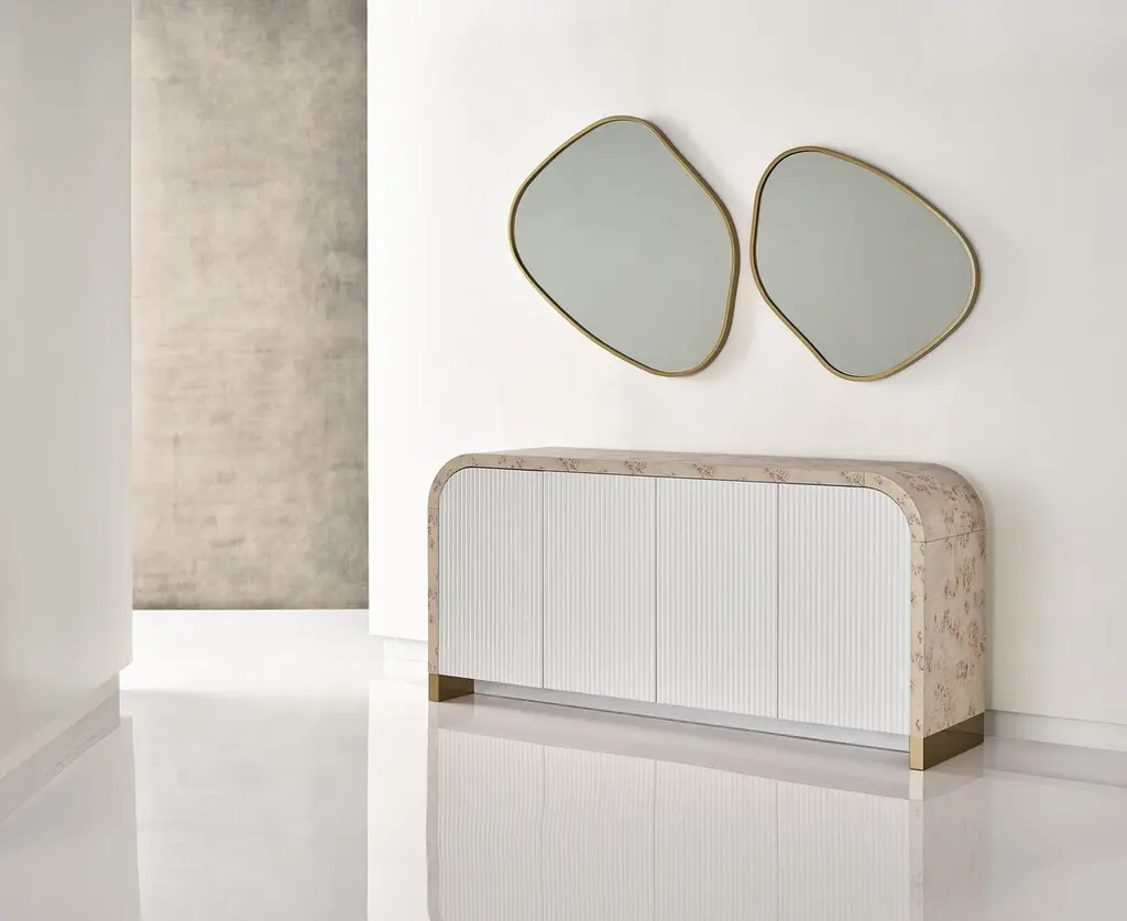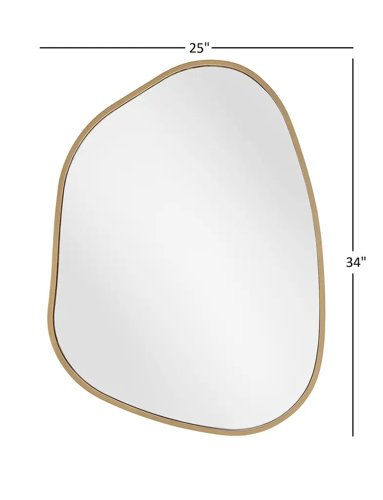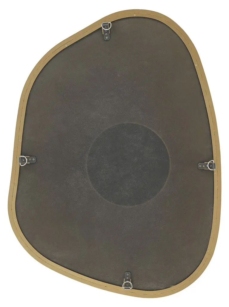 A brushed gold frame adds sophistication to the fluid shape of this eye-catching wall mirror.