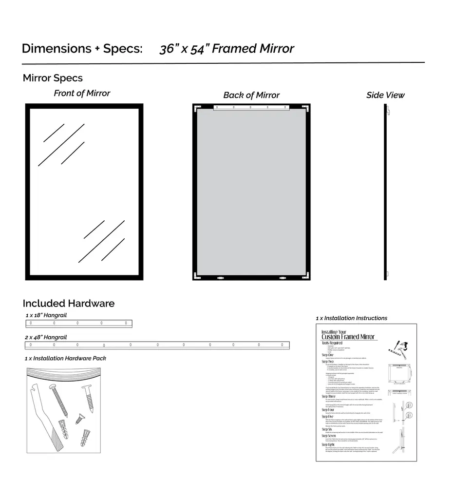 Square meets shiny in the Galveston, a framed mirror with a blend of rustic and modern elements. The straightforward shape and the mottled metallic finish of this frame give it a handcrafted look.Hangrail for installation will be applied on the width of the frame. All assembly hardware and instructions will be included. Additional hangrails are included if the opposite orientation is desired for installation. The dimensions displayed are the final outside dimensions of the frame, including the mirror. CATII safety backing applied on all mirrors. Approved for high-moisture areas such as bathrooms.