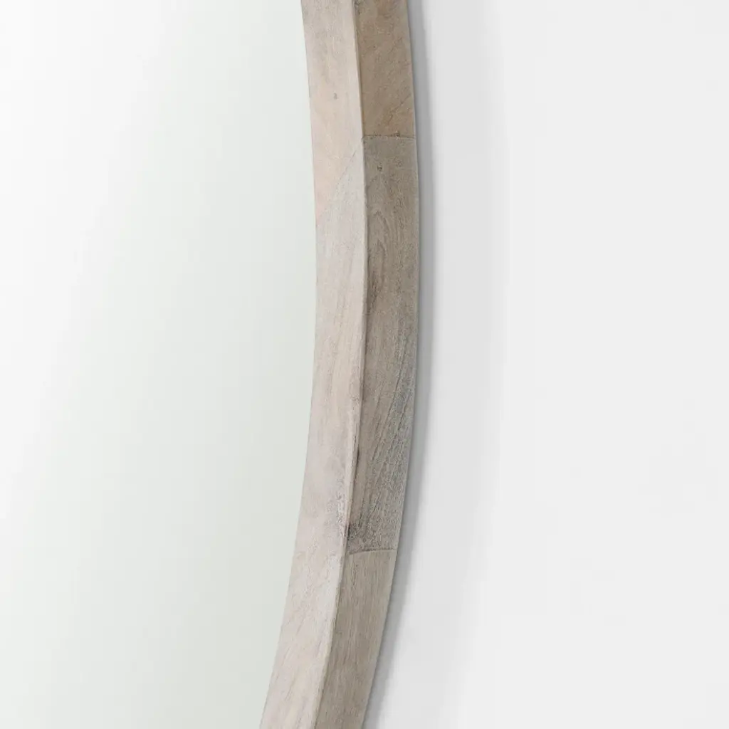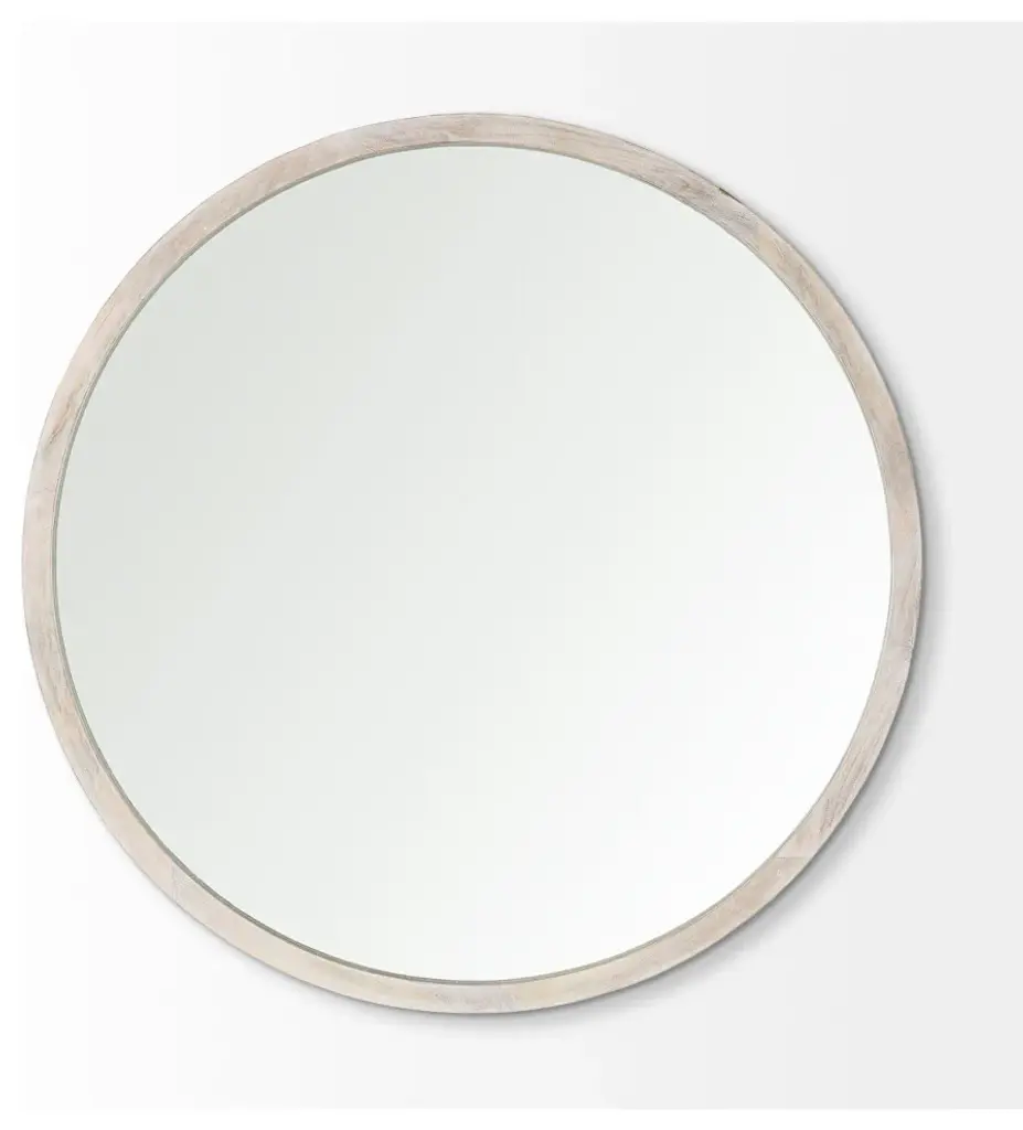 The Gambit is comprised of a sleek and smooth wooden frame and filled with a round shaped premium mirror. The Gambits frame is finished in a beautiful light-brown tone made from Indian mango wood. The center is filled with a smooth premium mirror that beautifully and clearly reflects its surroundings. Make spaces appear larger, bounce light, reflect views, fill empty walls, add texture, or simply bring in an element of decor - our Gambit mirror provides endless possibilities! The Gambits elegant simplicity offers a subtle sense of sophistication that fits into a variety of design styles. The Gambit measures 46.0" long by 1.0" wide by 46.0" high.