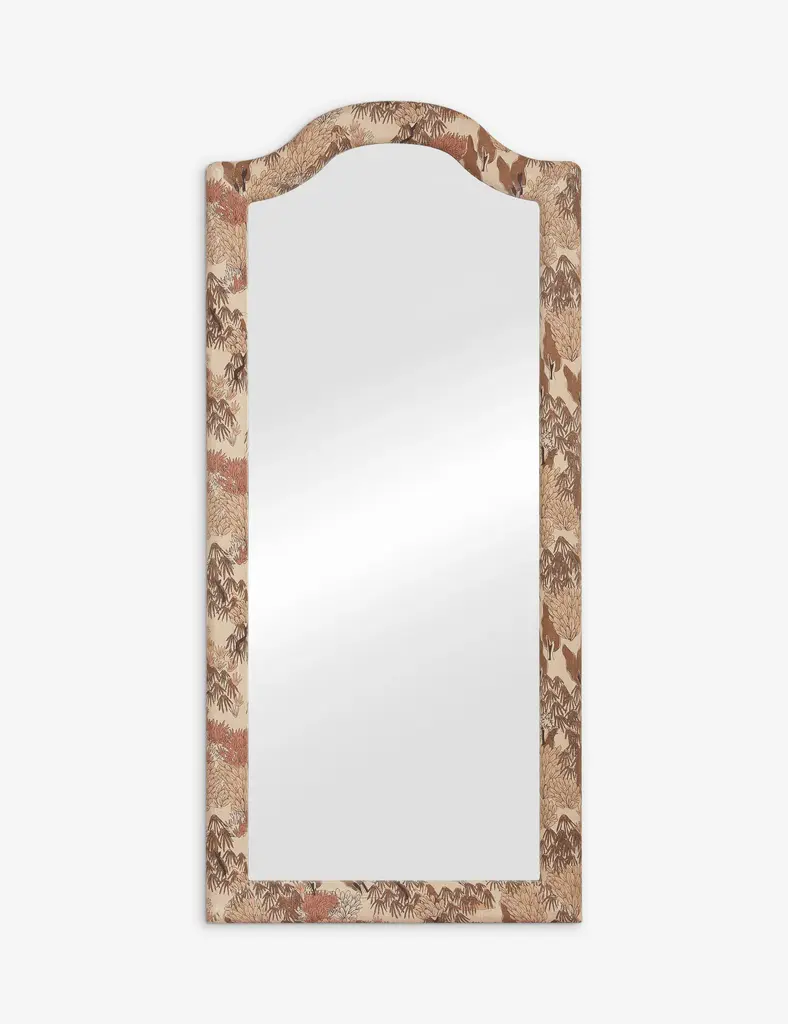 With its softly arched shape, this mirror adds a classic silhouette with a tailored touch. The upholstered frame reimagines classic botanical patterning in a richly detailed modern print. This mantel mirror is from our exclusive Sarah Sherman Samuel collaboration and features all the trademarks of her warm, edited style.