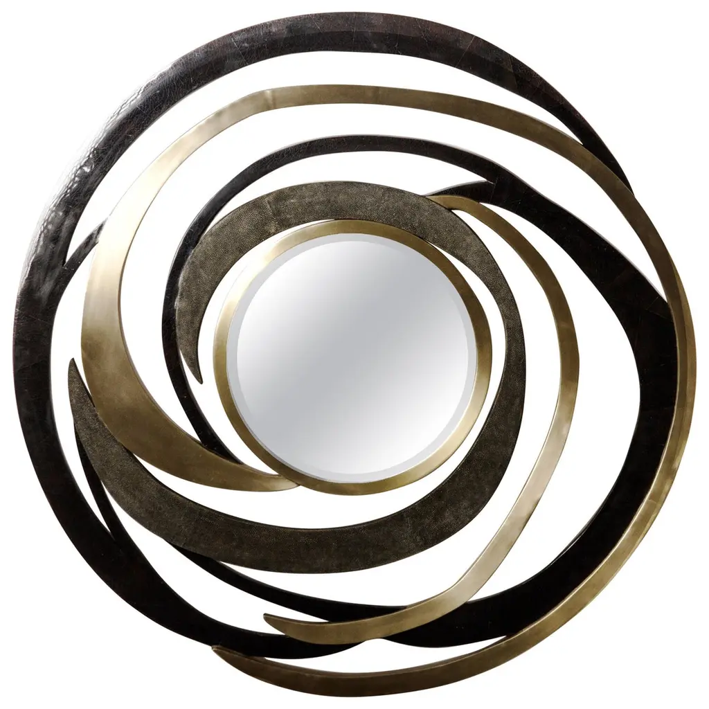 Modern mirror in geometric flower shape, with a black frame. This unique design mirror is perfect for any space, you can used it in the bedroom, bathroom, reception, dining room or living room as decoration piece.Features:Metal frameDimensions32"H x 32"W x 3"DWeight 15 lb