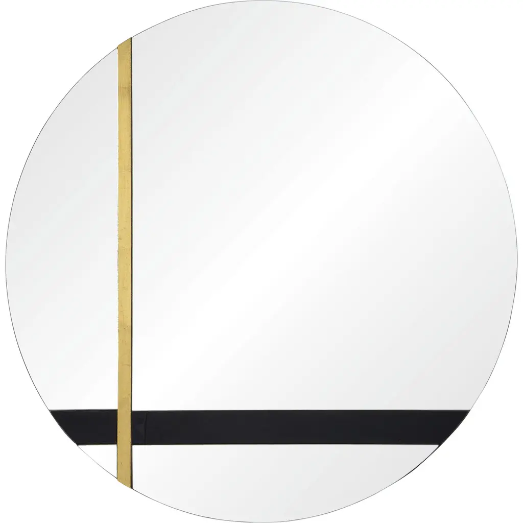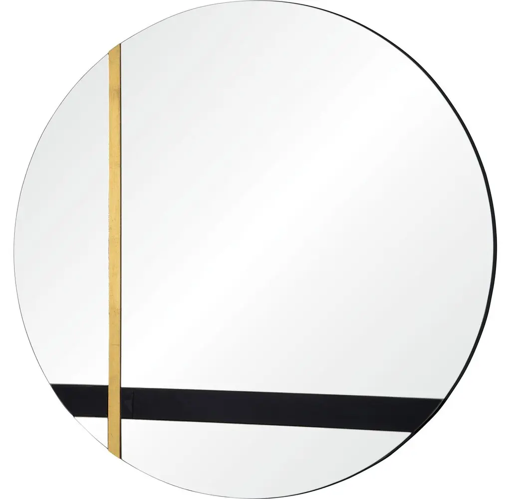 Gavin 30" Round Wall Mirror, Black/gold Leaf