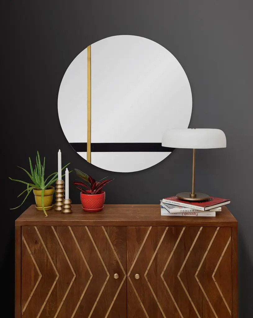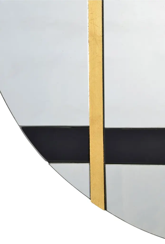 Fresh and modern in a bold tri-tone design, this frameless wall mirror is sure to brighten up any space with its glamorous gold-leaf details and classic shape.