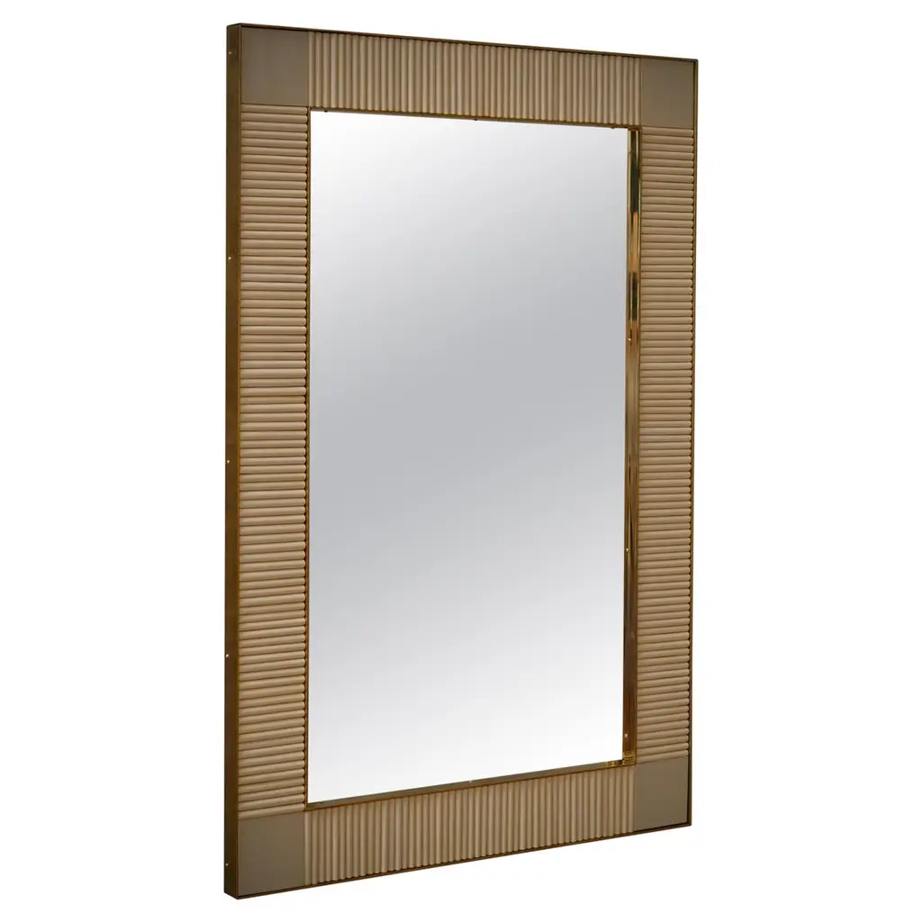 The Gawain Mirror is a lavish design statement with a regal, distinguished look. A beveled mirror is held within the rectangular beech wood frame, displaying a textural fluted pattern in a Champagne Silver finish with accents of Gold Coast. This gorgeous piece is affixed with French cleats and hangs in both portrait and landscape orientations.