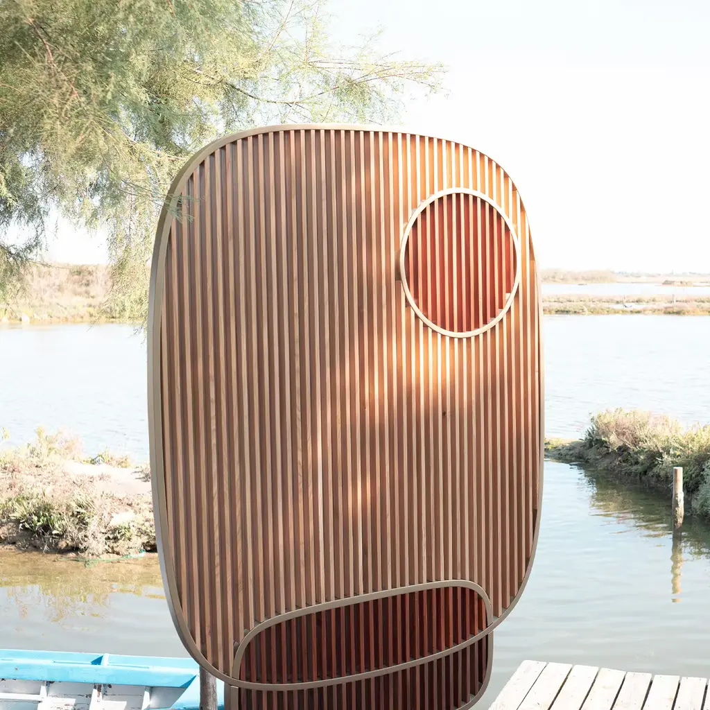 A captivating interplay of lines and perspectives changing based on the viewer's distance from the mirror, this extraordinary design will make for an iconic accent to a contemporary interior. Handmade of MDF, solid wood, and acrylic mirror, please consult the Concierge for further information on materials.