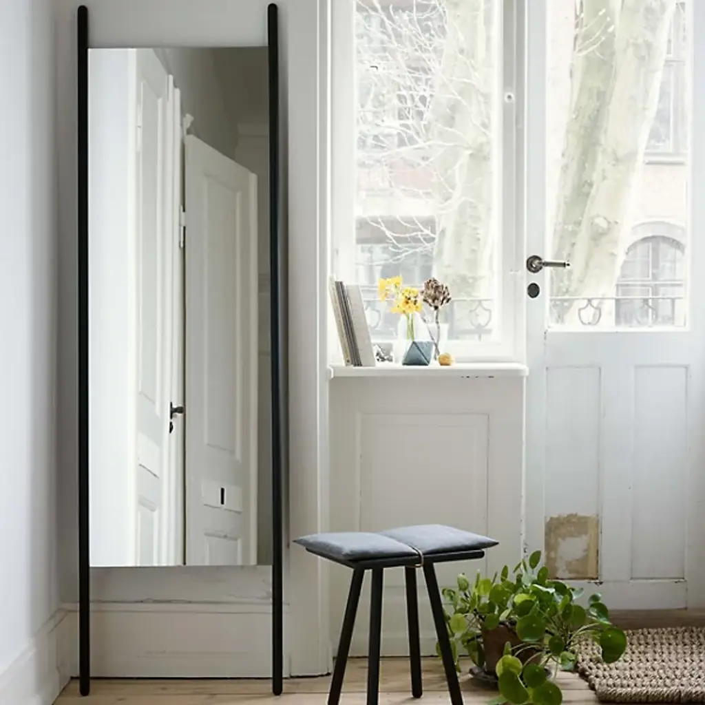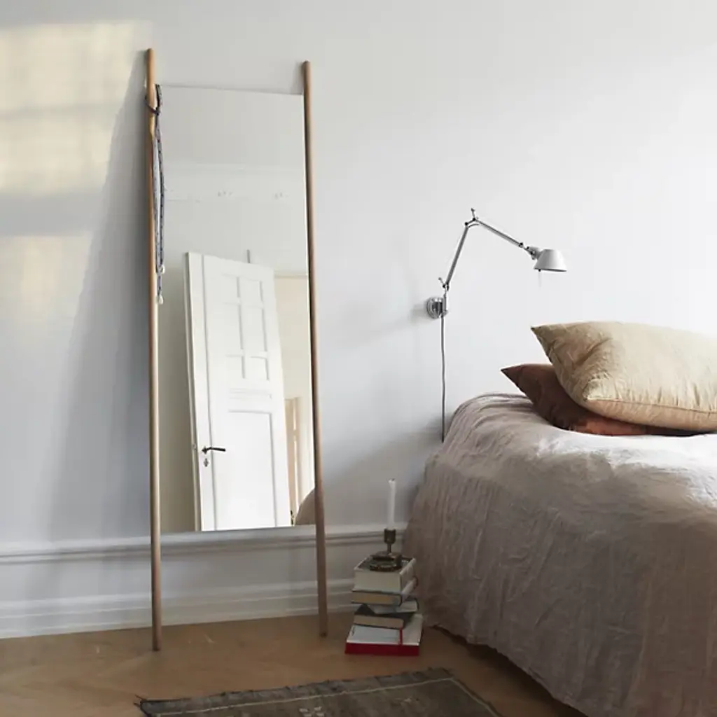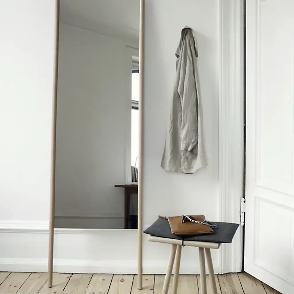 The Georg Mirror from Fritz Hansen, part of a collection designed by Chris Liljenberg Halstrøm, combines Nordic warmth with Japanese minimalism. This elegant, wall-leaning mirror offers both style and functionality, featuring slender wooden poles and rounded edges. The FSC-certified oak frame’s two poles double as convenient hangers for bags, hats, or scarves, making it a practical addition to any space.