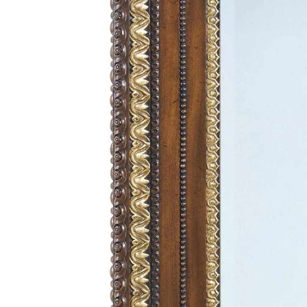 A richly detailed homage to mid-18th century English craftsmanship. Inspired by a design circa 1760s England, this commanding mirror features an elaborately carved frame rendered in figured walnut, accented with parcel gilt detailing and stylized rosettes. The projecting Kit-Cat corners enhance its stately profile, drawing directly from traditional George II proportions.At the center, a beveled mirror plate provides elegance and clarity, surrounded by a frame that blends classical refinement with artisanal depth. This mirror makes a dramatic impression in formal entryways, above sideboards, or anchoring mantelpieces with historic character and enduring sophistication.Dimensions: 42" W x 2.75" D x 62" H