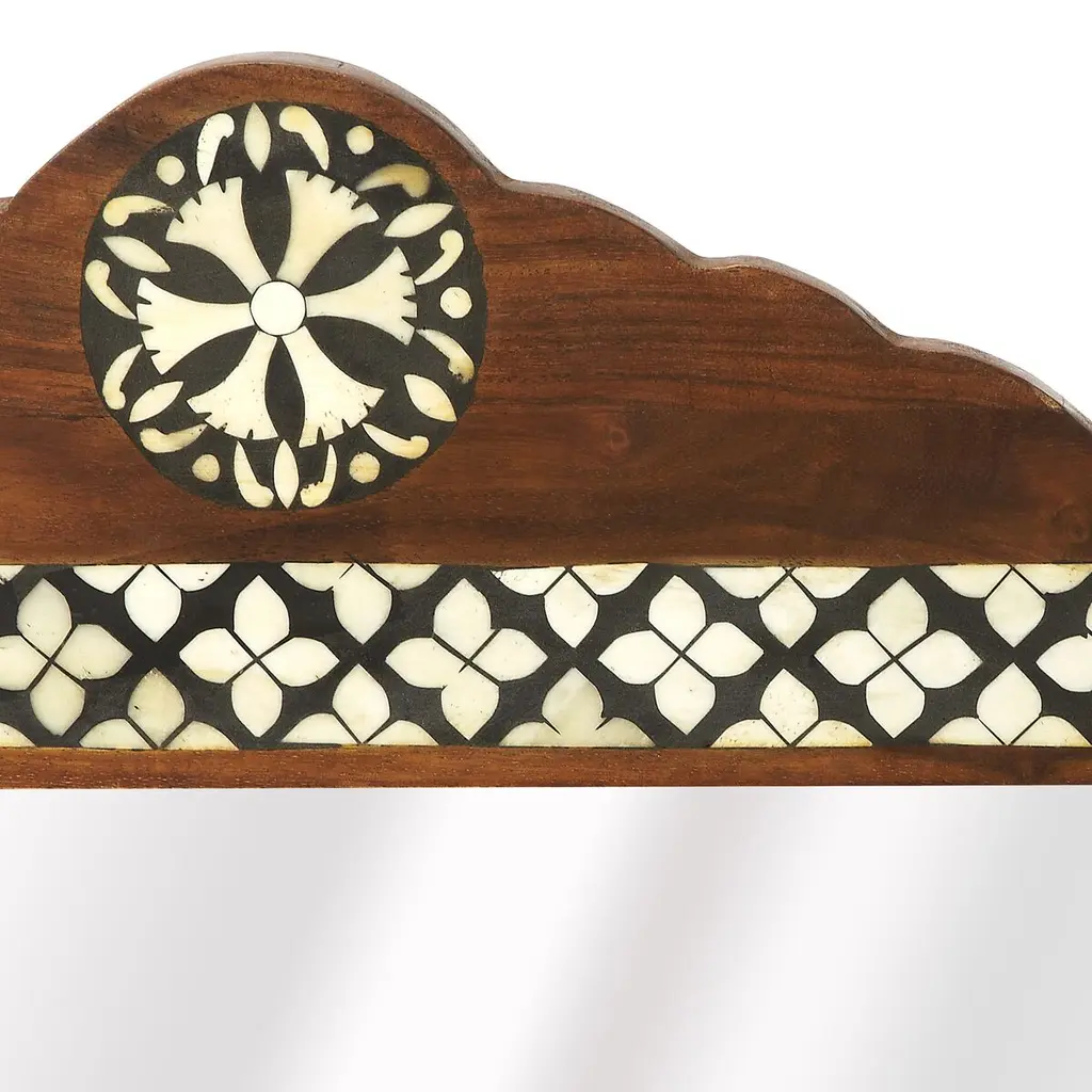 Gia Bone Inlay Merranti Wood Wall Mirror, Brown/white