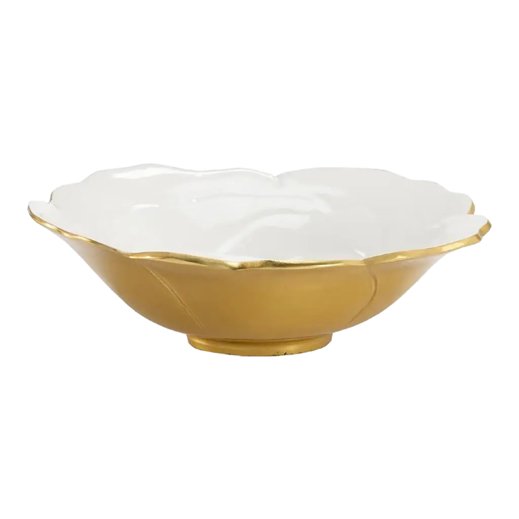 The Gilded Shards Mirror is a unique artistic statement that infuses a stunning sense of depth and dimension to an interior space. An asymmetric wooden frame showcases delicate ripples and robust edges that are beautifully elevated by a gold coast. The piece features seven individual pieces of beveled glass that appear as if the piece has been shattered, resulting in a bold design that makes an impact. The mirror is hung with french cleats and can be oriented in either landscape or portrait positions.