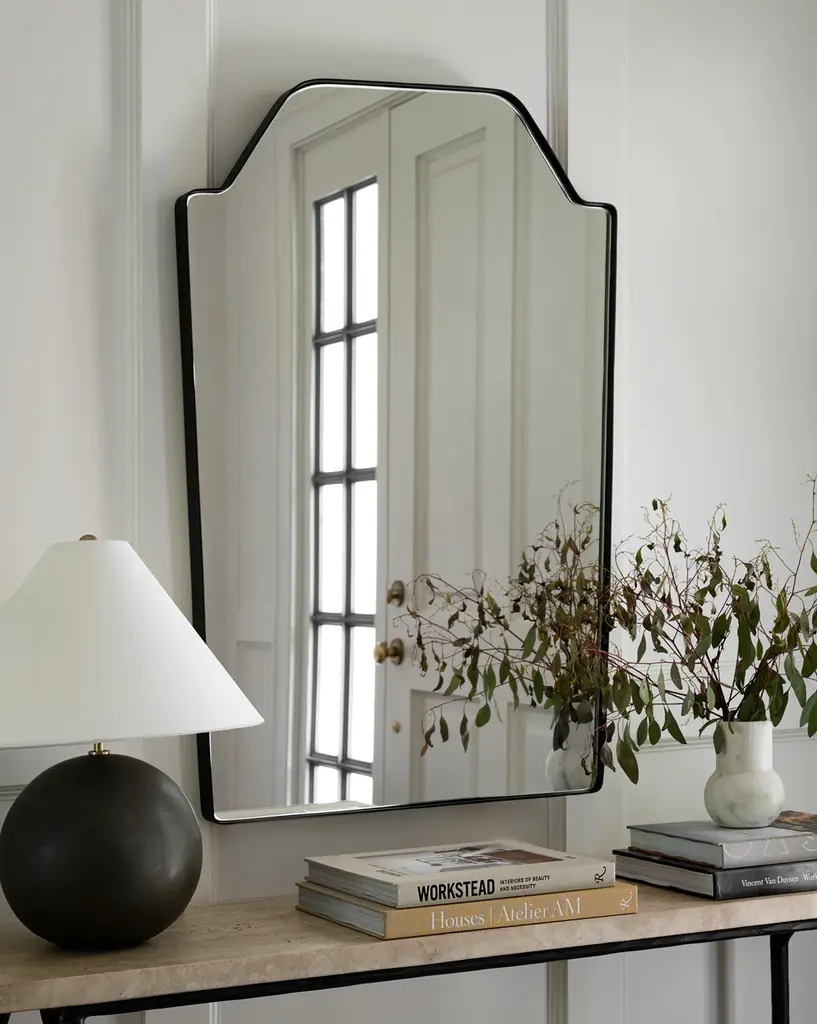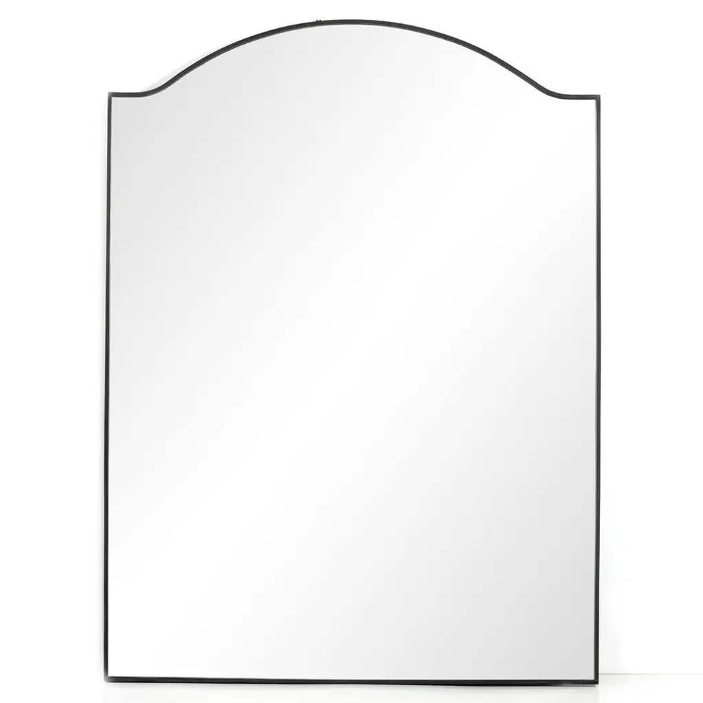 Shapely and traditional, the Giles Wall Mirror brings subtle elegance to any room. A simple curved top adds subtle detail and balance to the long rectangular shape. With a matte black finish on the stainless steel border, this wall mirror creates beautiful dimension in your space.