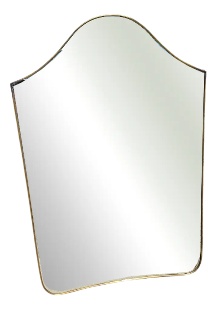 Gio Ponti 'F.A. 33' Half Length Mirror in Brass for GUBI The 'F.A. 33' mirror was originally designed by Gio Ponti in 1933 for Fontana Arte, the period’s most prominent lamp, glass, and mirror manufacturer. Executed in brass and glass. With its curved shape and iconic expression, the timeless 'F.A. 33' mirror adds a gentle touch of elegance to any interior style. The mirror comes in two different sizes, full length and half length, making it possible to be used in any room as a classic mirror or a striking decorative design element.Price is per item. Available in unlimited quantities in polished or black brass and in full or half length sizes. This listing is for the 'F.A. 33' half length mirror in polished brass. In-stock lead-time 1-2 weeks. Out of stock and lead time for other variations can take several weeks more. Availability can change at any time. Please inquire for current lead times prior to placing time sensitive orders.Italian designer, architect, and editor, Gio Ponti (1891-1979) is one of the most influential design visionaries of the 20th century. Ponti designed a wide array of furniture and products throughout his career - from cabinets, lamps, and chairs to ceramics and glassware - and his buildings, including Pirelli tower in Milan and Denver Art Museum, were erected in 14 countries. Through Domus, the design magazine he founded in 1928, Ponti promoted a new curiosity and open-mindedness towards new design thinking.Made to order, all sales are final.