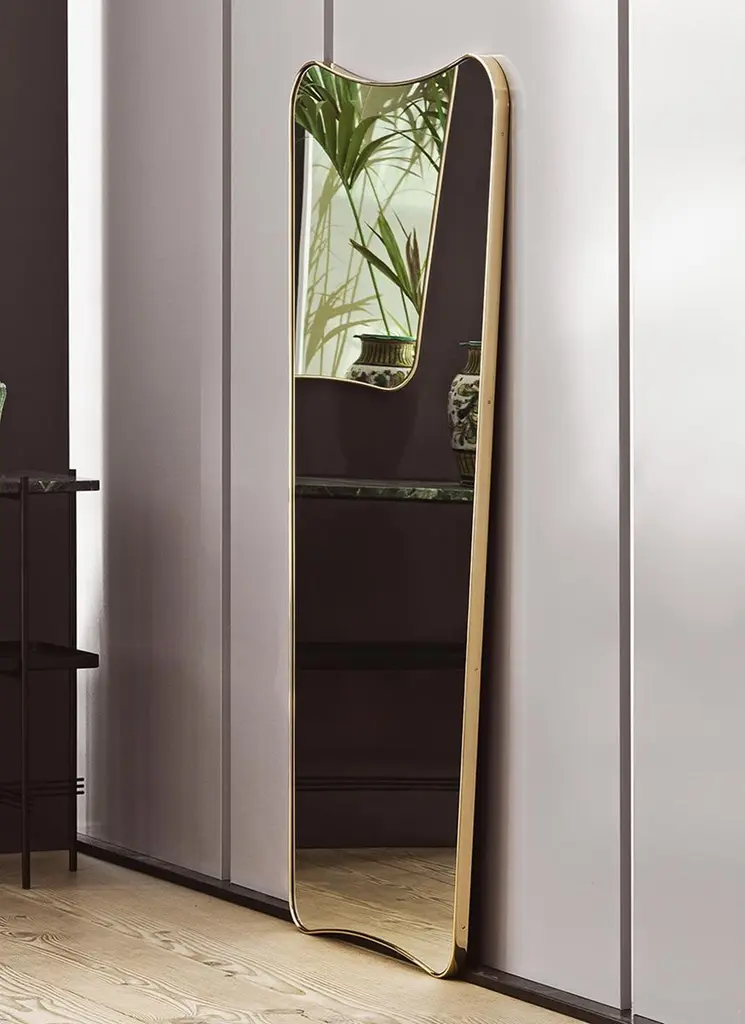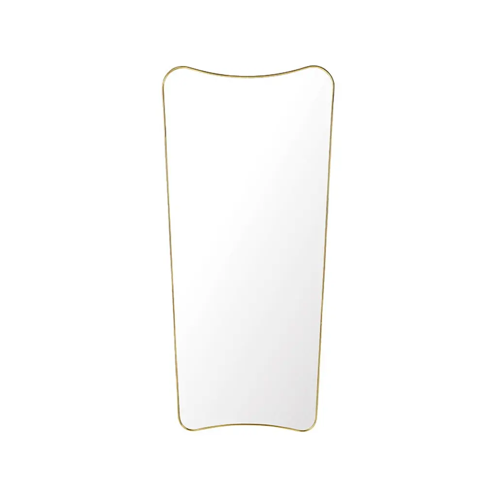 The F.A. 33 Wall Mirror was originally designed by the legendary Italian architect and designer Gio Ponti in 1933 for FontanaArte, the renowned lamp, glass, and mirror manufacturer he co-founded with Pietro Chiesa. A true design icon, the mirror reflects Ponti’s signature style - elegant, minimal, and enduringly modern.With its refined, curved silhouette and graceful proportions, the F.A. 33 Mirror adds an understated yet sophisticated presence to any space. Whether hung in a hallway, bedroom, or living room, it acts as both a functional piece and a decorative focal point, embodying the timeless quality of Ponti’s work.The mirror is available in two sizes, full length (70 x 146 cm) and half-length (54 x 80 cm) , and comes in polished brass or black brass finishes. These versatile options make it easy to integrate into a wide range of interior styles, from classic and mid-century modern to contemporary and minimalist. A perfect blend of heritage craftsmanship and modern elegance, the F.A. 33 Wall Mirror continues to captivate design lovers and collectors nearly a century after its creation.The mirror is available in two sizes and two finishes:- Sizes: 54 x 80 cm (half-length) or 70 x 146 cm (full-length)- Finishes: Polished Brass or Black Brass- This item is currently in stock and ships within 1-3 business days from our Chicago warehouse.