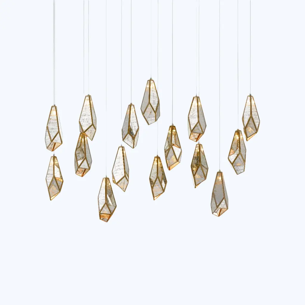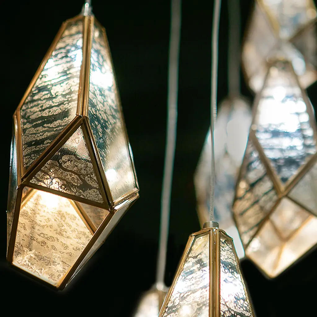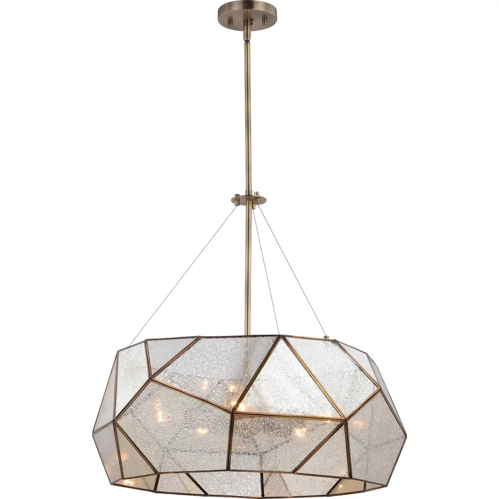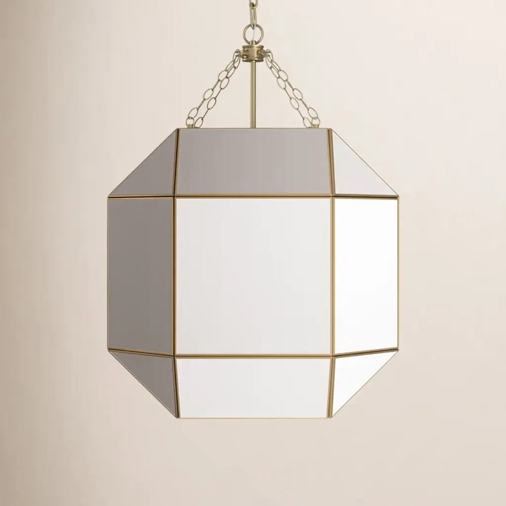 Bring bohemian glamour to your interiors with the Glace Mirror Pendant by Currey & Company. Featuring a faceted shade crafted from panels of antique-style mirrors, this beautiful fixture blends old-world charm with contemporary elegance. Available in multiple configurations, from a single drop to statement-making clusters. Style in a dining room, hallway, or foyer.