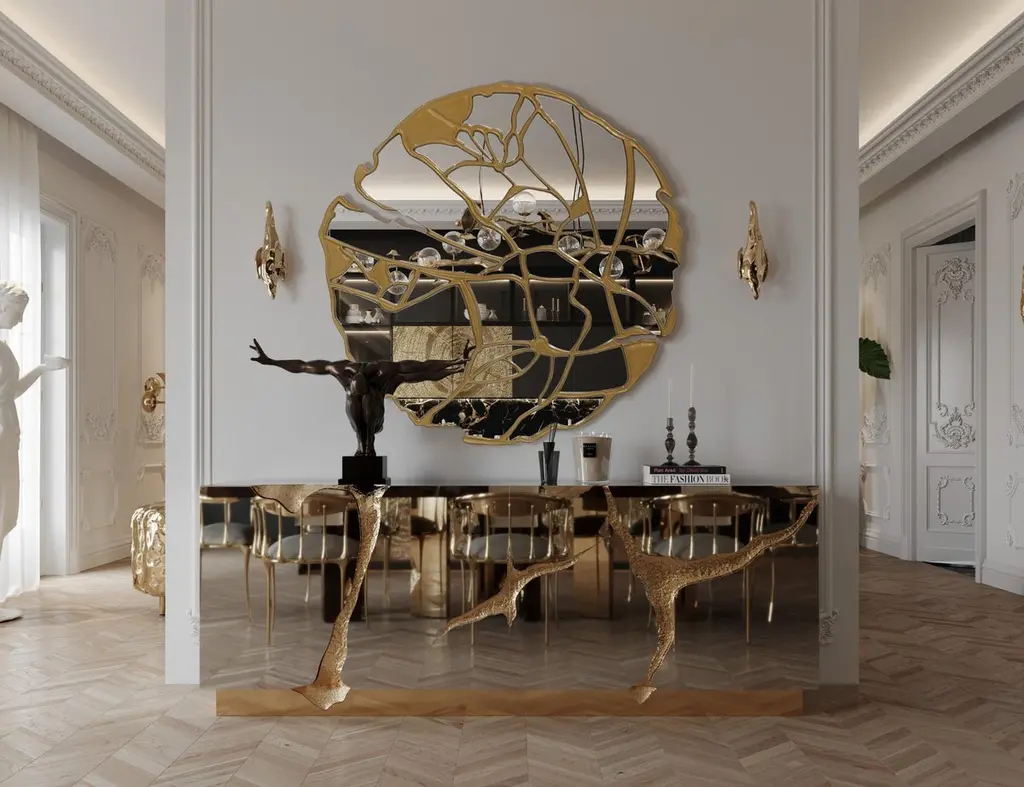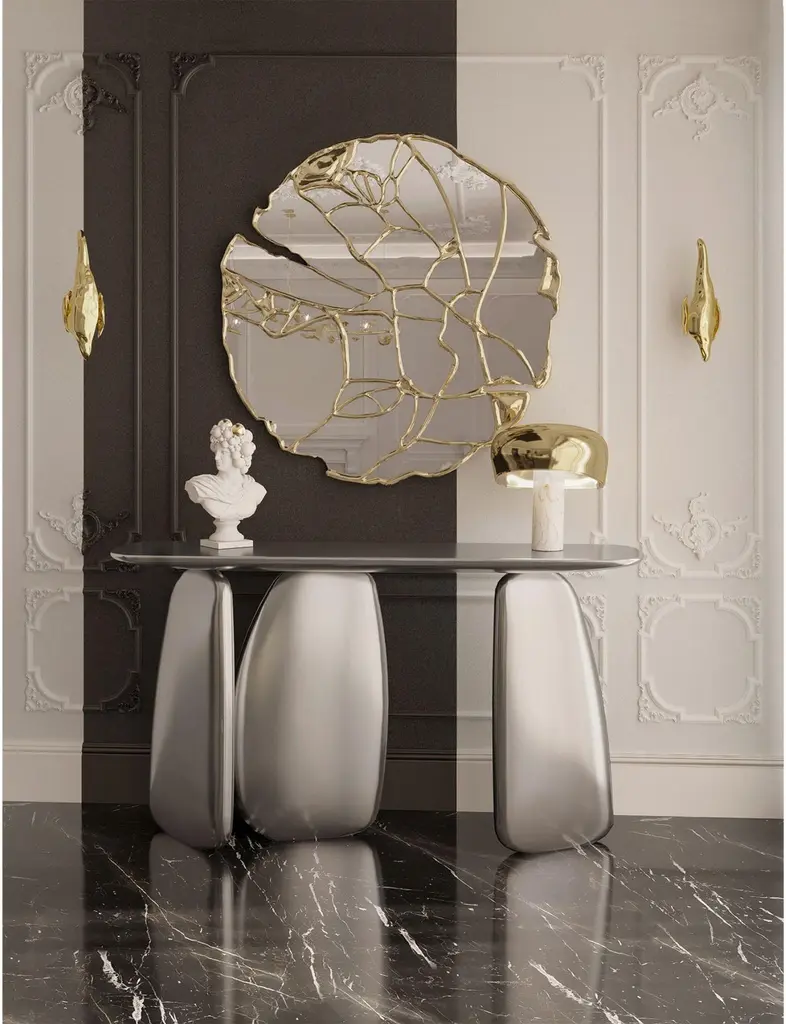 The Glance Mirror is an outstanding round wall mirror designed for contemporary interiors and majestic rooms. Crafted with meticulous attention to detail, Glance features a captivating touch of elegance. The mirror is composed of expertly fragmented pieces of glass, creating a unique and contemporary aesthetic. From stylish bedrooms to upscale halls or living rooms, Glance is a statement piece that effortlessly blends modern design with exquisite craftsmanship. Experience the beauty and allure of Glance, where contemporary style meets timeless sophistication.
