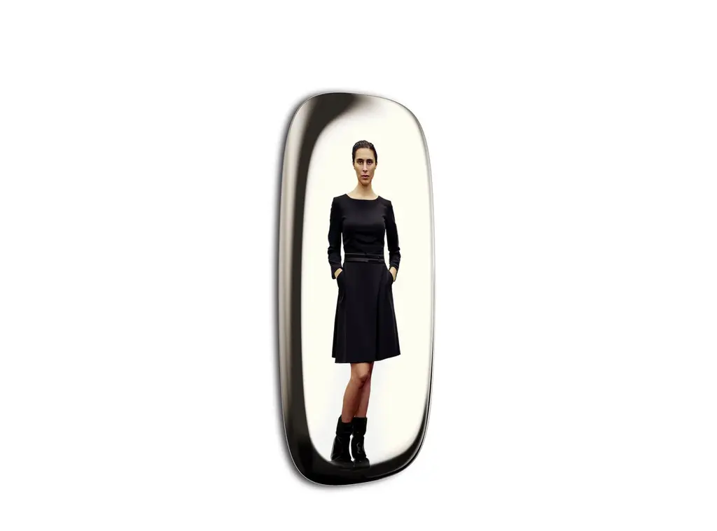 A series of 4 mirrors, each made from a single sheet of extra-clear glass curved around its entire perimeter, thanks to innovative and complex bending techniques, and manually silvered to perfection. Depending on the silver face, a mirror with a concave or convex surface is obtained, with a frame reflecting the images and distorting them at random, while the area in the center, perfectly flat, guarantees a true reflection and functional use. Available in two sizes, a round mirror and a rectangular one which, can be hung in either direction.The back side of the concave version is available in the colours silver or orange Pantone 163C.Available in different options, please inquire with us.DIMENSIONS:L 85 - P 5 - H 175 cm