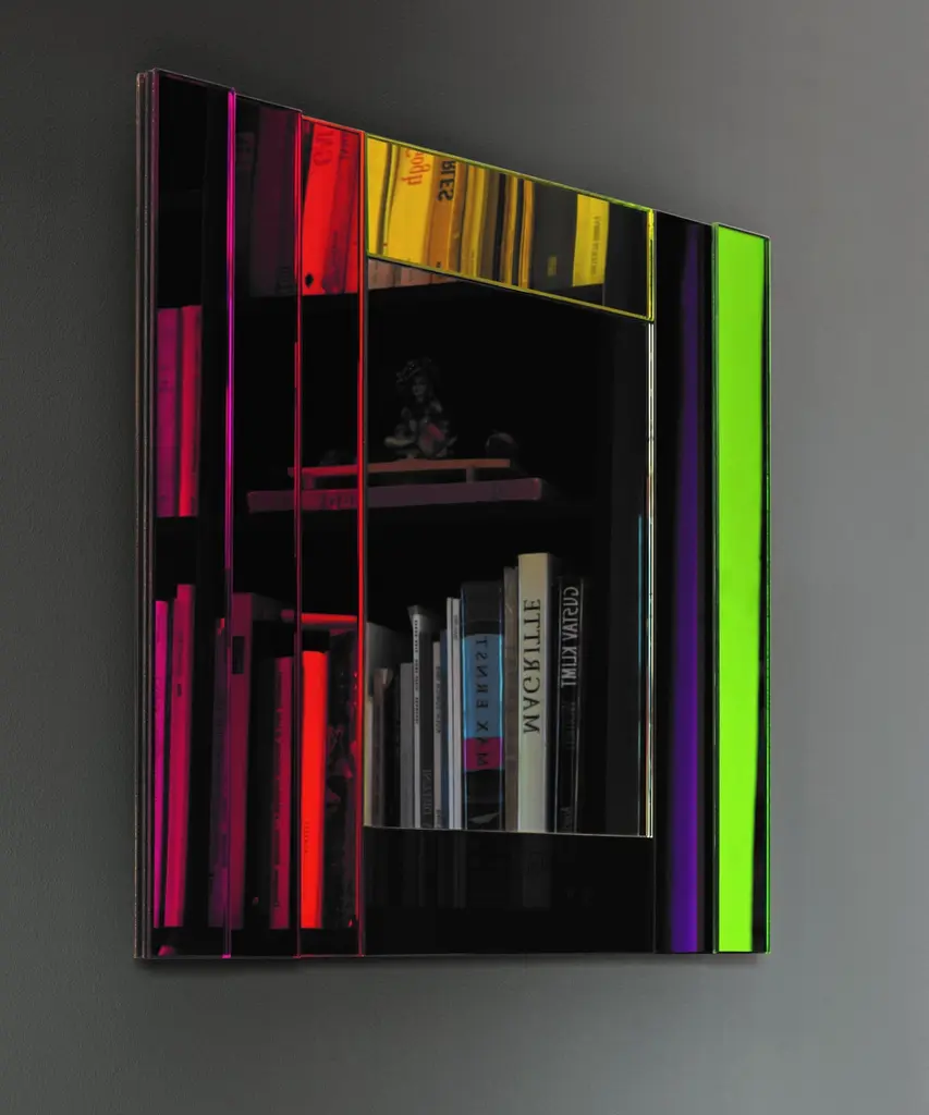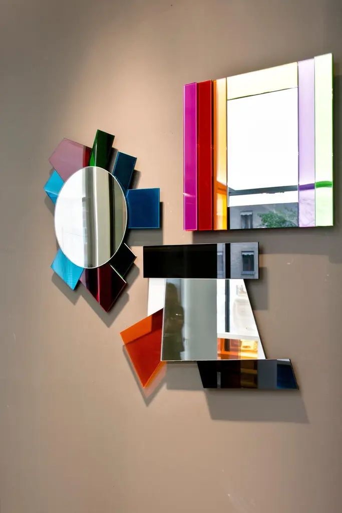 Dioniso3 Gli Specchi di Dioniso wall mirror is from a collection of 6 wall mirrors in different shapes and sizes characterizes by polychromatic frames composed of elements in laminated coloured mirror, coloured laminated glass and lacquered glass.Ettore Sottsass was born in Innsbruck, Austria, in 1917. He received his degree in architecture from the Turin Polytechnic in 1939. In 1947 he opened his own architecture and design office in Milan. Parallel to his professional work, he held solo shows of his paintings in Italy and abroad, participated in group art exhibitions and showed at several editions of the Milan Triennale. His collaboration with Olivetti began in 1958 and lasted for over thirty years, during which he received three Compasso d’Oro design awards. All throughout the 1960s and early 1970s, Sottsass’s work explored the themes that would stand central to his designs in the years to come: it was during this period that he laid the foundations for what would later be called Nuovo Design. In 1988, with Barbara Radice, Sottsass founded the magazine Terrazzo, in which the themes of Nuovo Design, explored by Memphis, were developed and extended to architecture and contemporary culture. Starting from 1985, Sottsass began focusing again on architecture. His works are in the permanent collections of a wide range of museums: Centre Georges Pompidou, Paris; Musée des Arts Décoratifs, Paris; Victoria & Albert Museum, London; Stedelijk Museum, Amsterdam; MOMA, New York; Metropolitan Museum, New York; Musée des Arts Décoratifs, Montreal; Israel Museum, Jerusalem; National Museum, Stockholm.Additional information:-Dimensions: DIONISO3; W 52.5 - H 50.