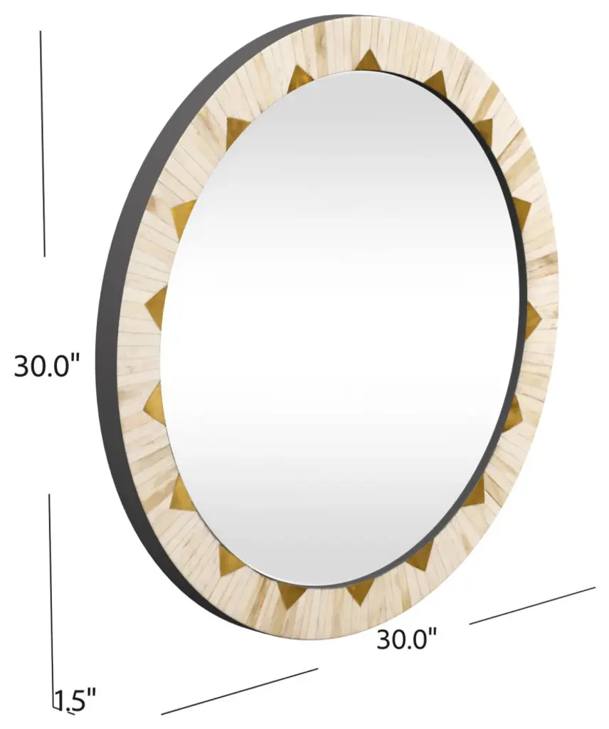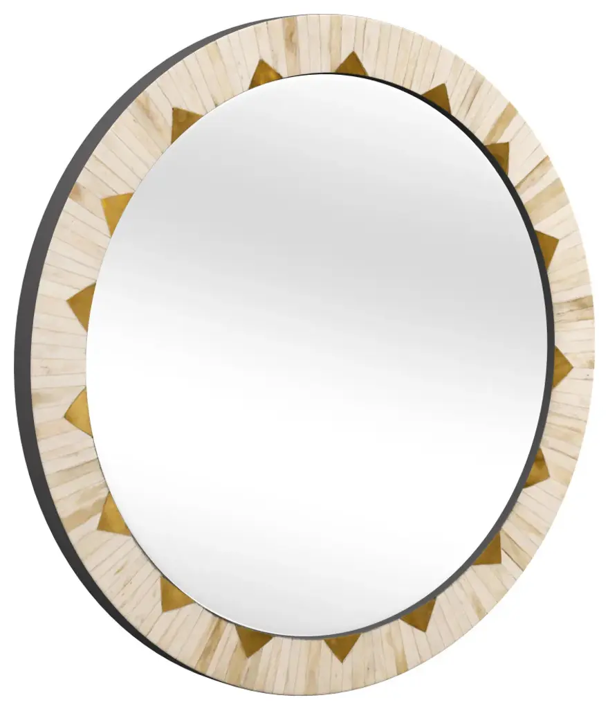 Global Wall Mirror is round, featuring natural colored bone with brass cladding accents.Features:Bone and brass detail provide boho stylingThe natural bone material will have variation from each specific pieceNo assemblyFor over a century, Bassett Mirror has been synonymous with style and quality, transforming homes with its sophisticated and timeless designs. With a wide-ranging collection of furniture, lighting, mirrors, and art, Bassett Mirror seamlessly blends modern style with classic appeal. From rustic modern to luxe glam, each piece is thoughtfully crafted to inspire and elevate any space. Committed to exceptional value and customer care, Bassett Mirror makes it easy for homeowners to create beautiful, personalized interiors with confidence.