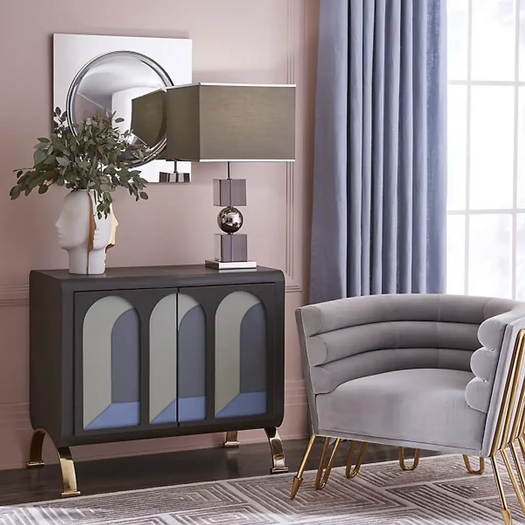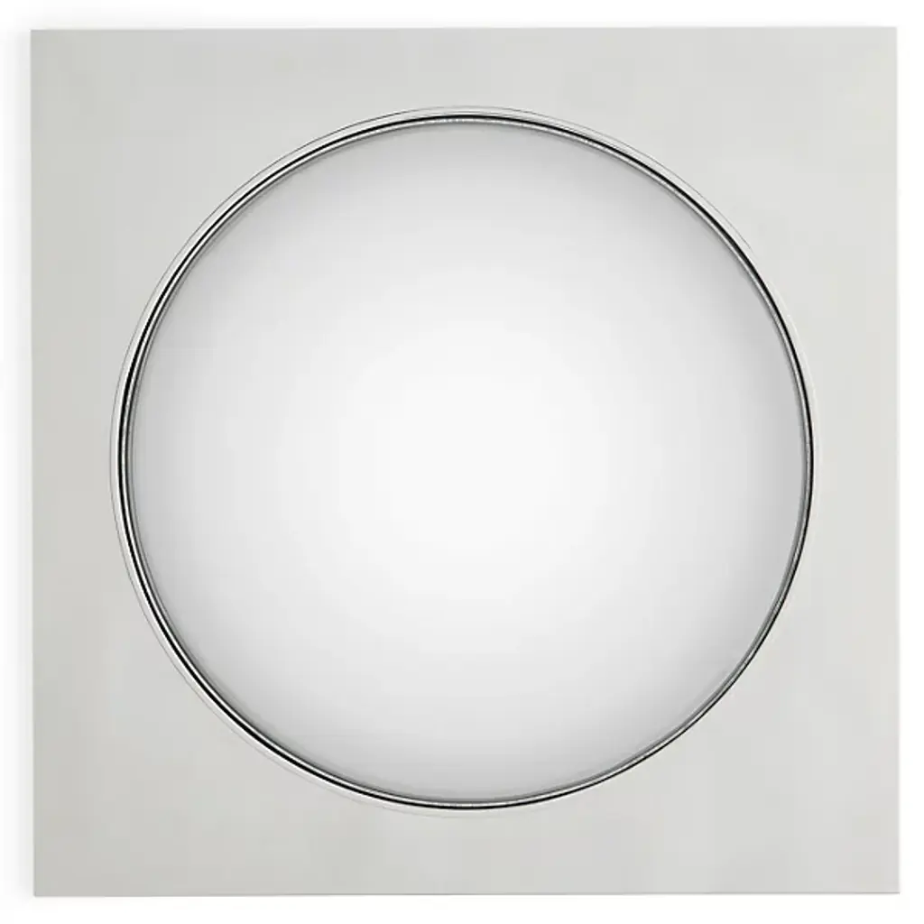 See your environment in a new way with the Globo Convex Mirror by Jonathan Adler. This elegant mirror brings a mid-century modern aesthetic to your room or hallway. A square frame neatly surrounds this circular mirror. This mirror's convex style playfully transforms the images it reflects, changing depth perception. Place this mirror above your console and give your space an aura of creativity. Use this piece in a group for a statement-making visual in larger areas.
