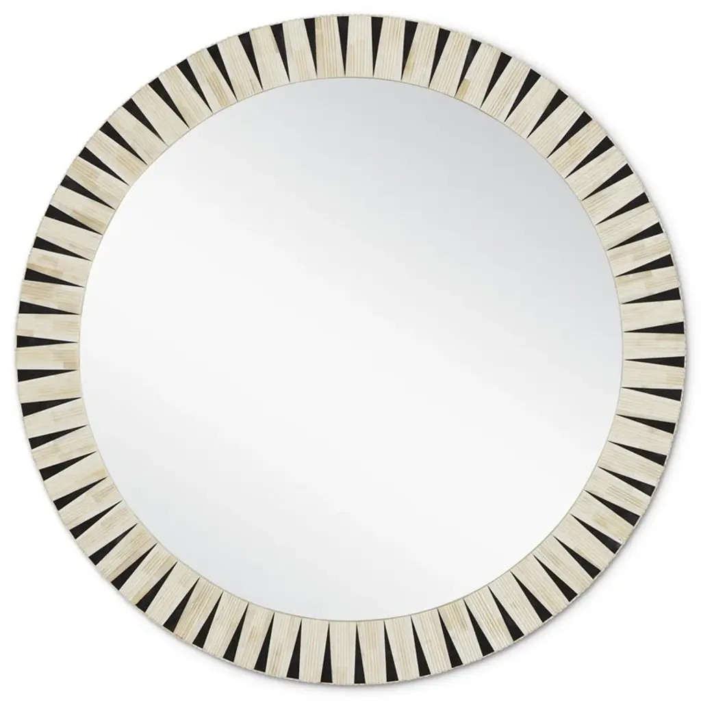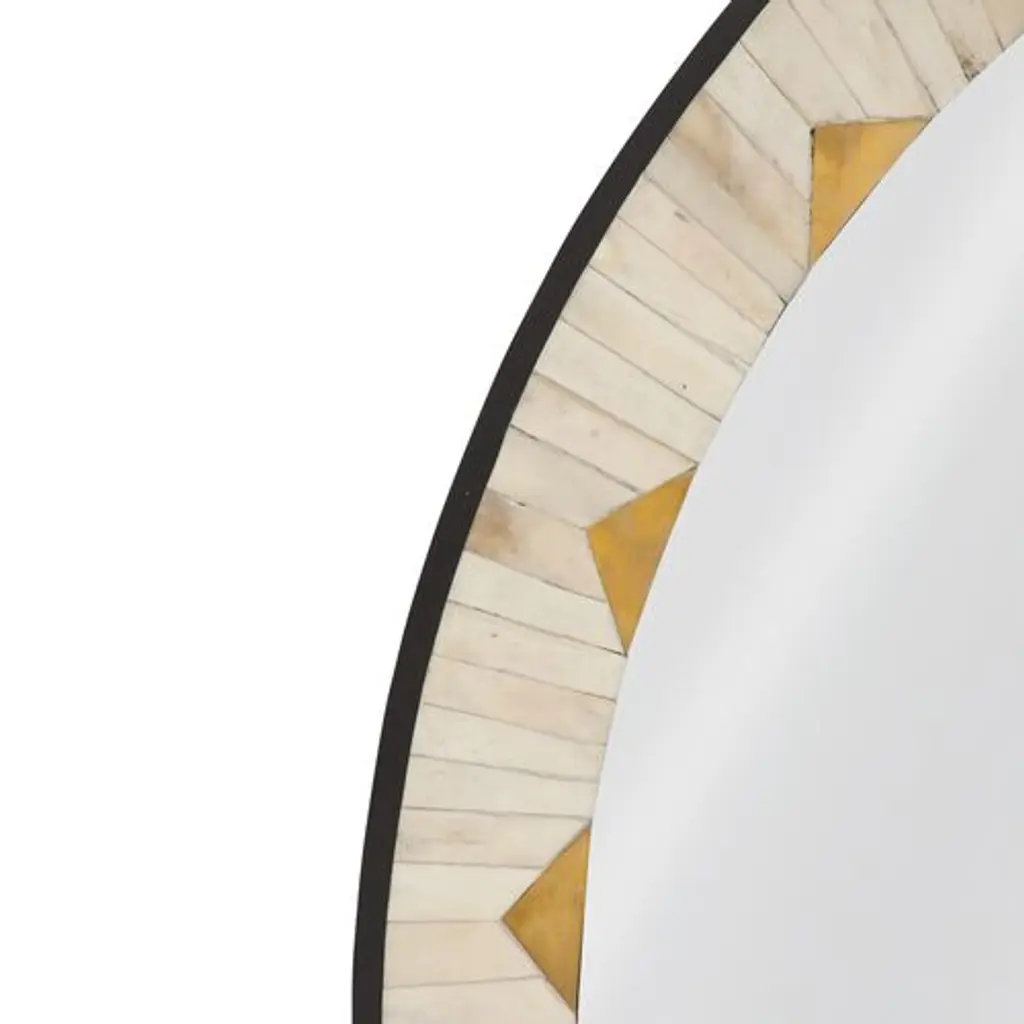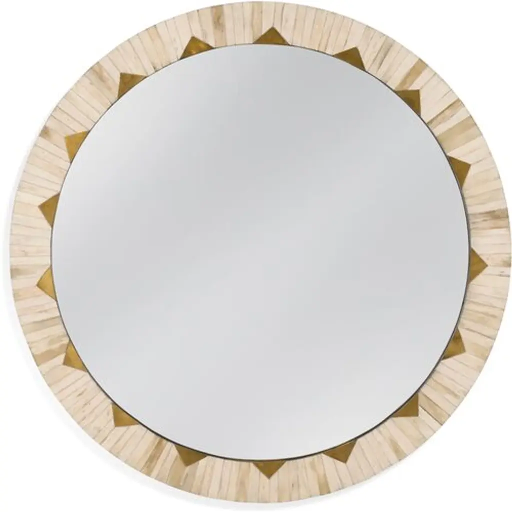 The epitome of organic elegance, this round mirror's frame is crafted of bone tiles accented with brass. Whether you hang it in an entry, a powder room, or a living room, it's certain to command attention.