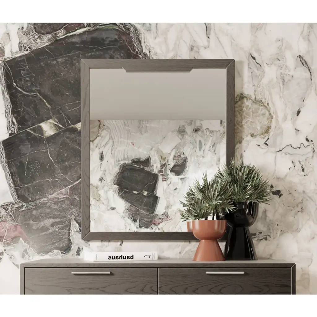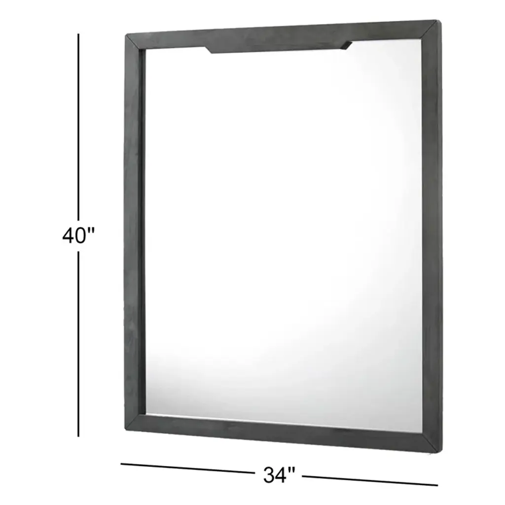 Reflect + focus. This mirror pairs a clean-lined silhouette with a fog-free glass surface. The wooden frame creates a sleek border, with a cutout accent at the top that adds a touch of dimension to the design. A beveled, slanted edge catches the light, brightening and bouncing light around your space.
