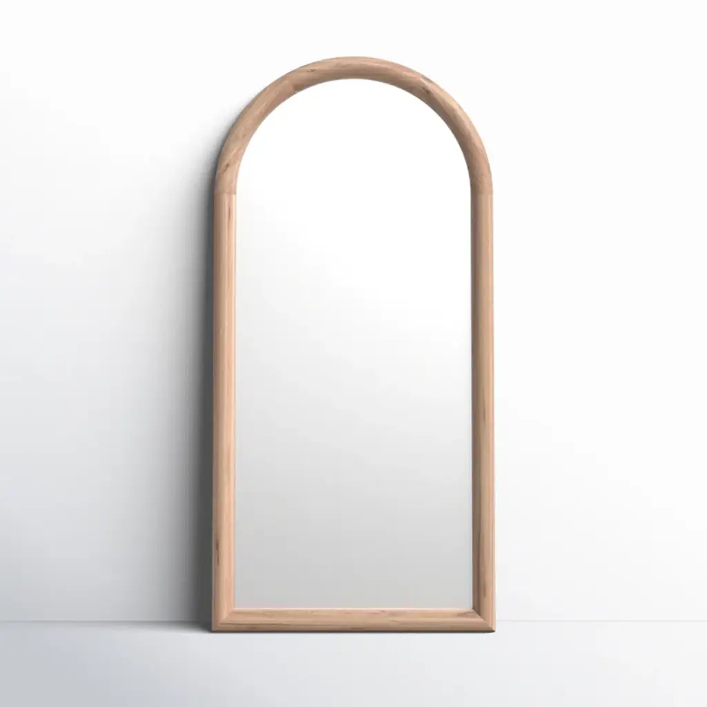 Designed with sleek curved lines and a solid wood frame, the Go Round Mirror adds a touch of elegance in your space. Mount it wherever you want to reflect a little beauty.