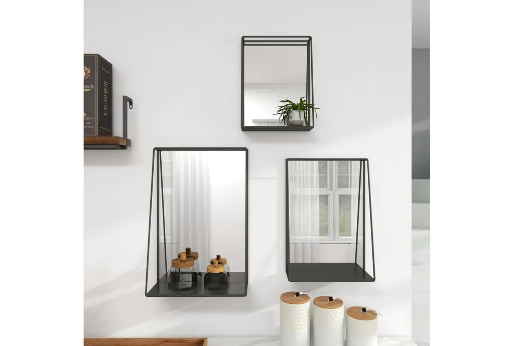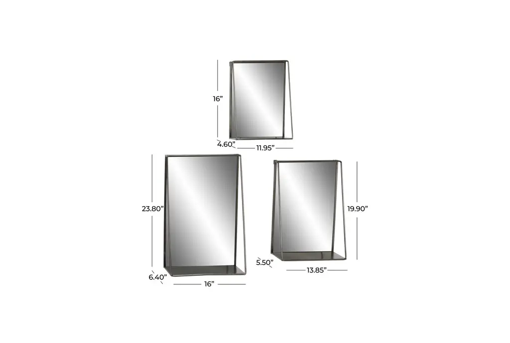 Gold 23.5 Inch Rectangle Metal Wall Mirror | Set Of 3 | 3 Piece | With Storage | With Shelves
