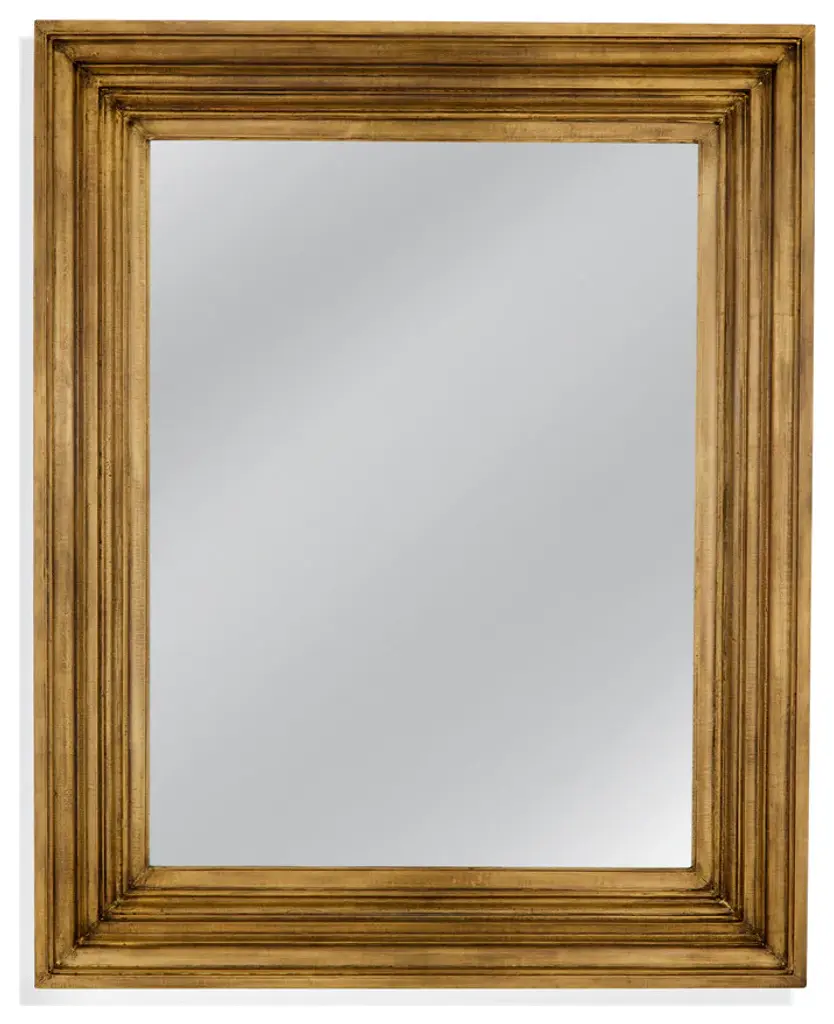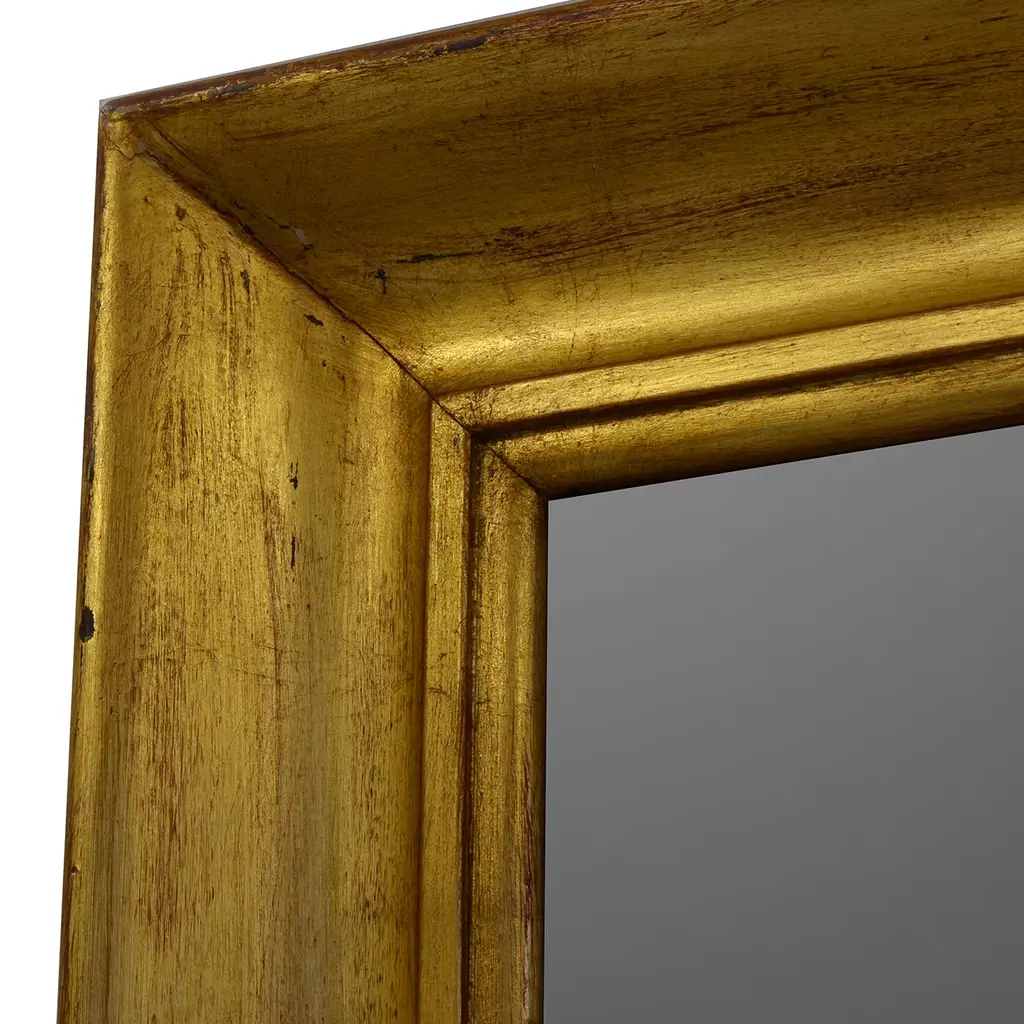 Clean and simple yet utterly elegant and sophisticated, this gorgeous wall mirror will make for a stupefying addition to classic or eclectic settings. Handcrafted of Guantiera pinewood by expert artisans, the simple rectangular frame is enriched with gold paint lending it a plush and refined allure.