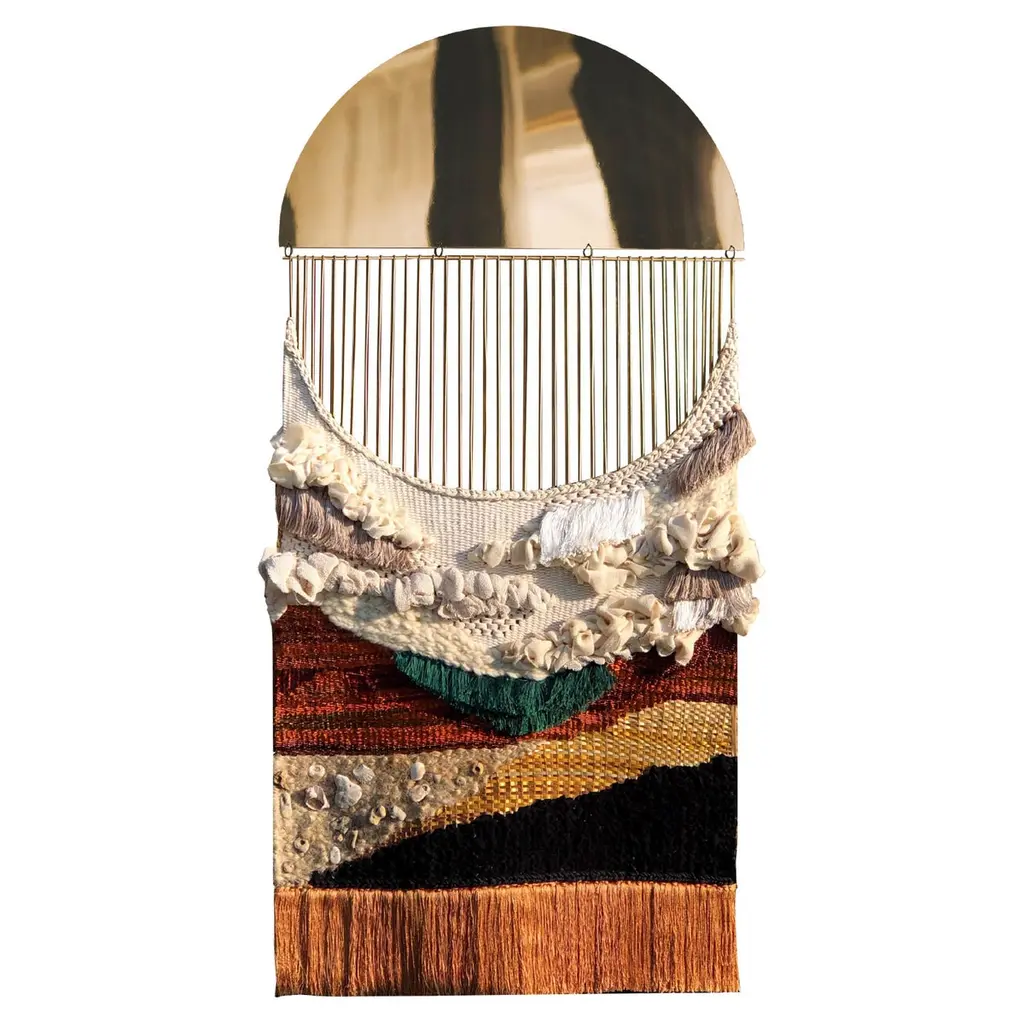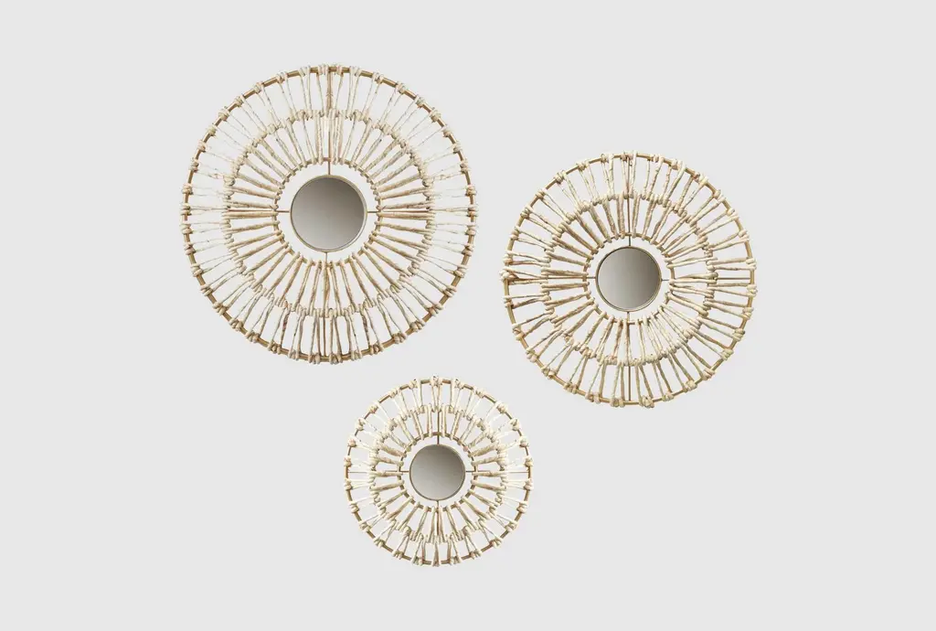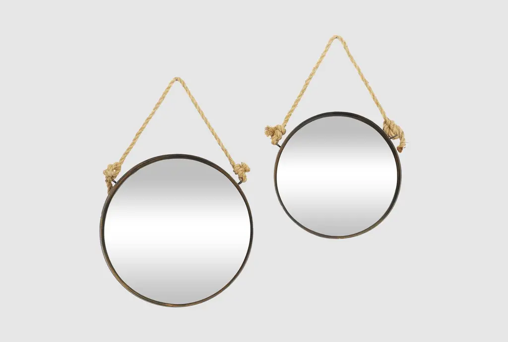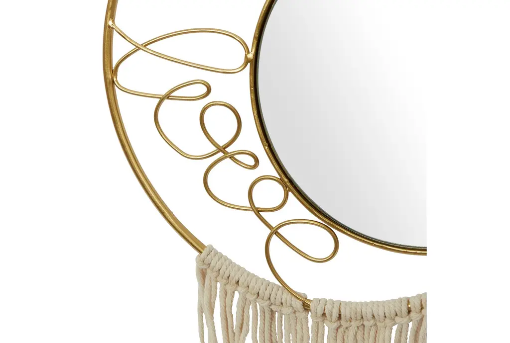 These decorative wall mirrors are great accent pieces for light-toned backgrounds with a minimalistic or bohemian-inspired interior design. This item ships in 1 carton. Due to the handmade nature of this item, no two will be alike, there will be slight differences in shape, size, and color. Can be hung vertically using the cotton cord; nails and screws not included. Suitable for indoor use only. This gold colored entryway mirror comes as a set of 2. Contemporary style. Inspirational vibes from the words "DREAM" and "LOVE" on the frame.