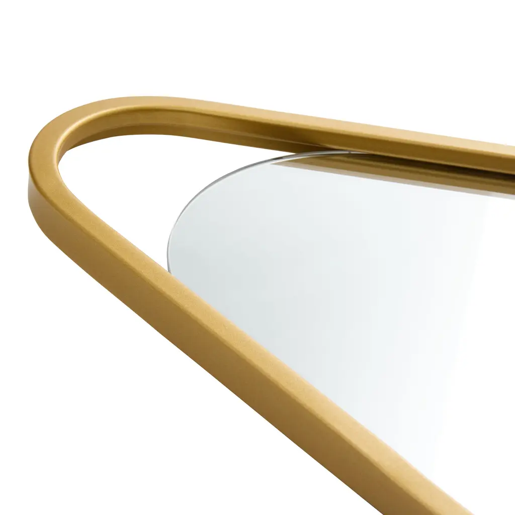 Our exclusive wall mirror is set into a unique teardrop-shaped frame made of metal with a gold finish, designed to create a small decorative gap at the top. Ready to hang with included hardware, this mirror lends enchanting dimension to wall decor, and it pairs beautifully with houseplants, textiles, and gallery-style art collections. It's a charming reflective accent that adds light and depth to bedrooms, bathrooms, or hallways.