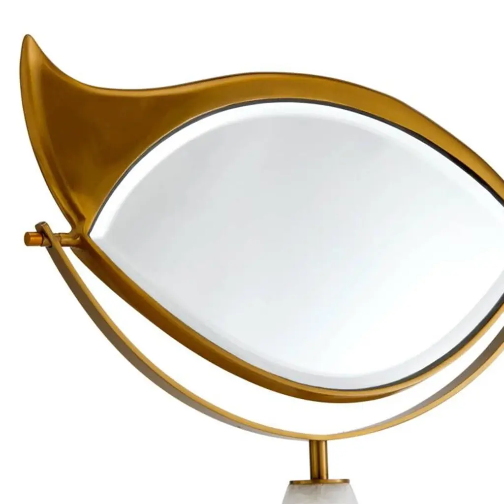 Mirror golden eye coiffeuse with solid brass structurein 24-karat and white marble base. With reclining beveledglass mirror.