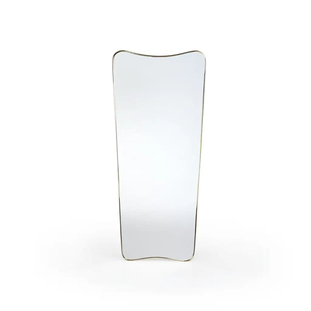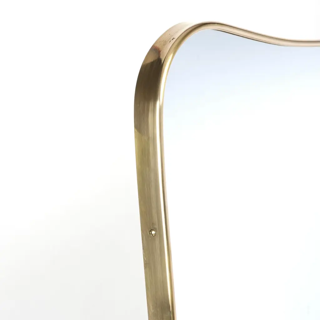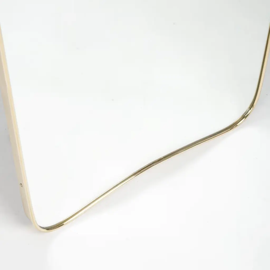 A sleek and minimalist design that will add a stylish element to any interior, this mirror is unique in its simplicity. Enclosed in a sinuous matte-finished brass rectangular frame with softly rounded corners, this mirror pays tribute to the iconic design by Gio Ponti.