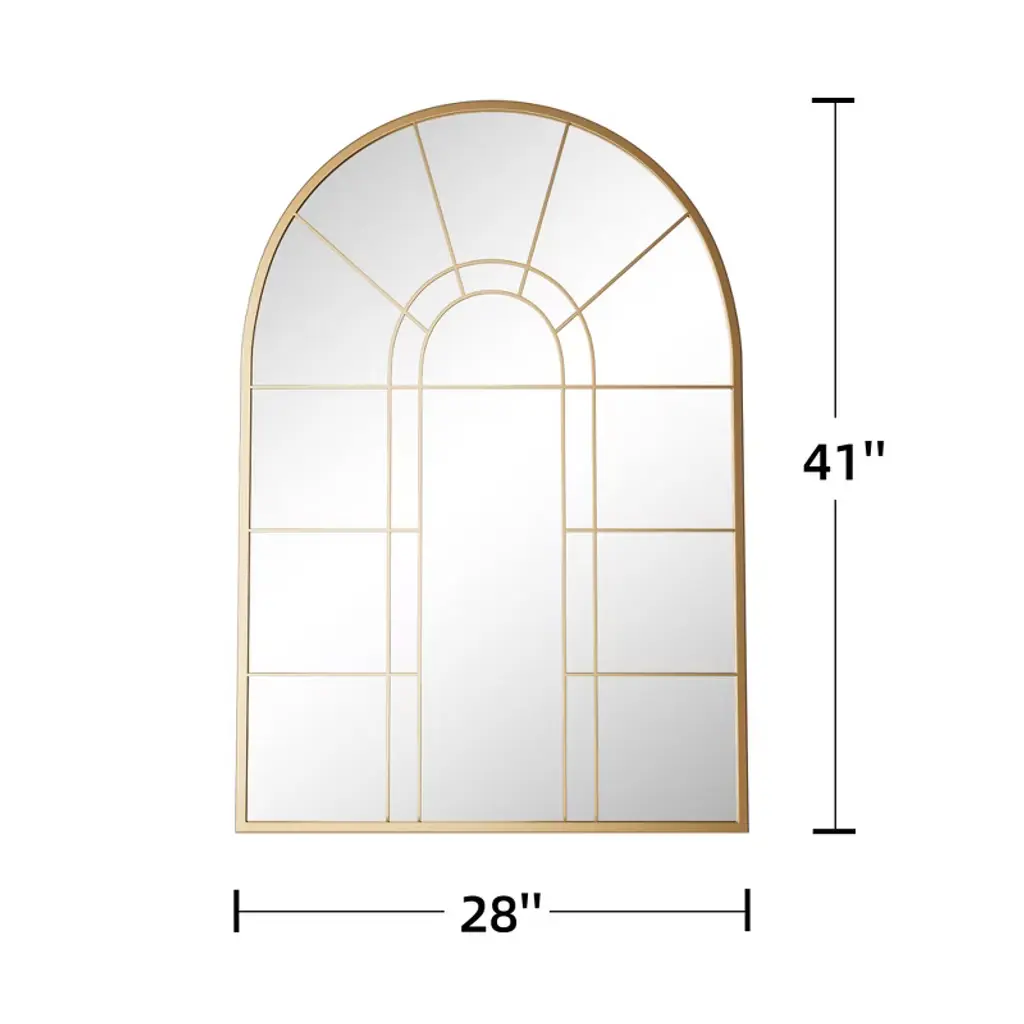 Embrace the artistry of design with the Iron Art Right Angle Double Arch Golden Grid Wall Mirror. This exquisite piece marries the strength of iron with the luxury of a golden grid pattern, creating a double arch silhouette that adds a touch of grandeur to any room. Its right angle design is both functional and aesthetically pleasing, making it a standout feature in your home decor.