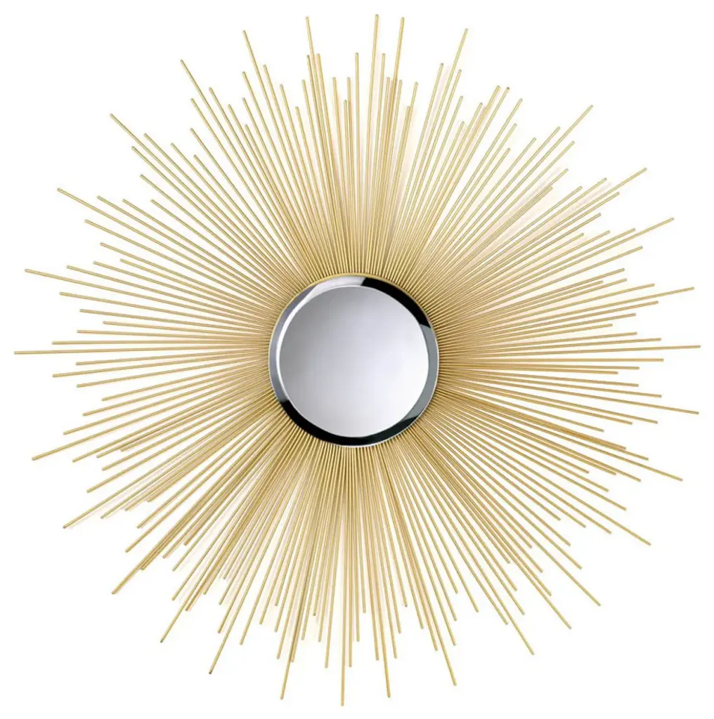 GOLDEN RAYS MIRRORA stunning addition to any room, this gorgeous mirror takes a touch of vintage style and makes a modern masterpiece. It features a beveled mirror inset in a burst of shimmering golden rays.GOLDEN RAYS MIRRORMaterial - IRONManufacturer -Accent PlusProduct Category - HOME DECORItem Length - 31.5Item Width - 0Item Height - 31.5