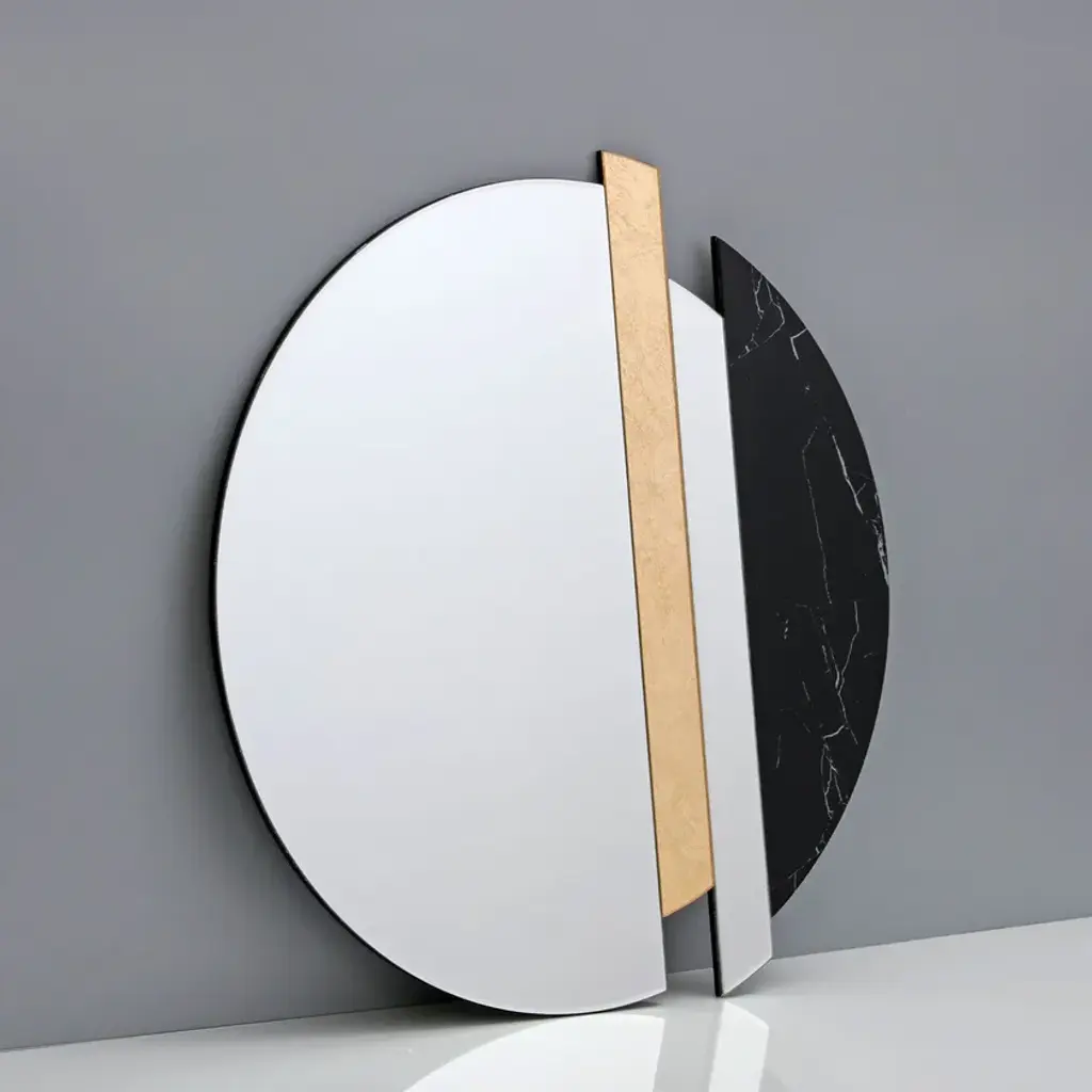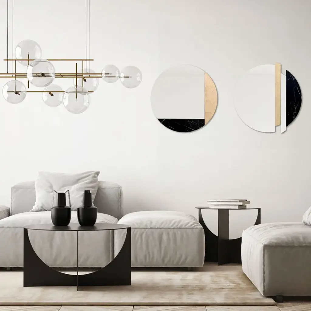 Golden Slice is a decorative mirror with an innovative design. The circular shape of this mirror is enhanced by a black section with an elegant marble effect and a central detail decorated with gold leaf. With its small size, it can give any setting a visually striking focal point.The AGAVE Art Mirrors collection was born from the desire to merge the art of painting with the functionality of mirrors into a unique and innovative piece of furniture: the Art Mirror. Launched in 2024 to celebrate the 15th anniversary of the AGAVE brand, this collection celebrates the excellence of contemporary art in interior design. These unique mirrors transform spaces into elegant and characteristic environments, perfect for design projects that require a distinctive touch. Discover how the AGAVE collection can enrich and enhance your projects with style and sophistication.