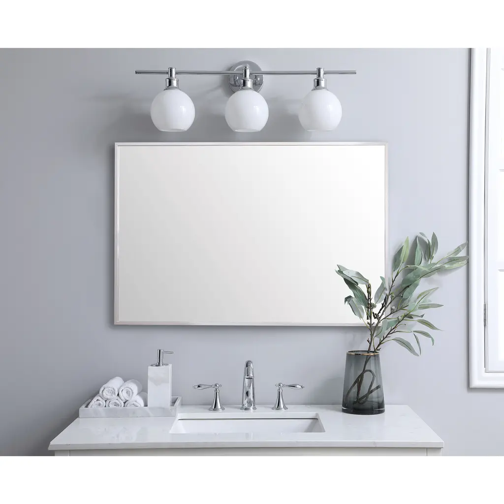 Enhance the contemporary appeal of your living space with our aluminum rectangle mirror. This versatile piece offers a modern aesthetic with its sleek metal-framed design and clean lines, adding a touch of sophistication to any room. The mirror's electroplated finish not only provides a subtle shine but also ensures durability. Its clear, non-beveled mirror surface delivers a pristine reflection, making it perfect for a variety of applications. The mirror can be effortlessly hung either horizontally or vertically, thanks to the attached metal cleats, allowing you to customize its placement to suit your space. Supported by a strong MDF backing, this mirror combines style with sturdiness, and its lightweight nature makes installation a breeze. Elevate the ambiance of any room with this chic and functional aluminum mirror.