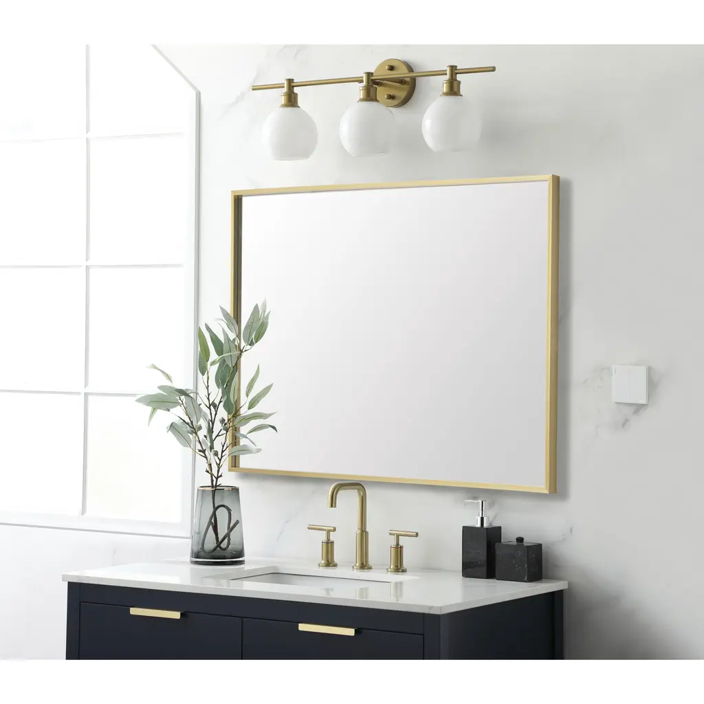 Enhance the contemporary appeal of your living space with our aluminum rectangle mirror. This versatile piece offers a modern aesthetic with its sleek metal-framed design and clean lines, adding a touch of sophistication to any room. The mirror's electroplated finish not only provides a subtle shine but also ensures durability. Its clear, non-beveled mirror surface delivers a pristine reflection, making it perfect for a variety of applications. The mirror can be effortlessly hung either horizontally or vertically, thanks to the attached metal cleats, allowing you to customize its placement to suit your space. Supported by a strong MDF backing, this mirror combines style with sturdiness, and its lightweight nature makes installation a breeze. Elevate the ambiance of any room with this chic and functional aluminum mirror.