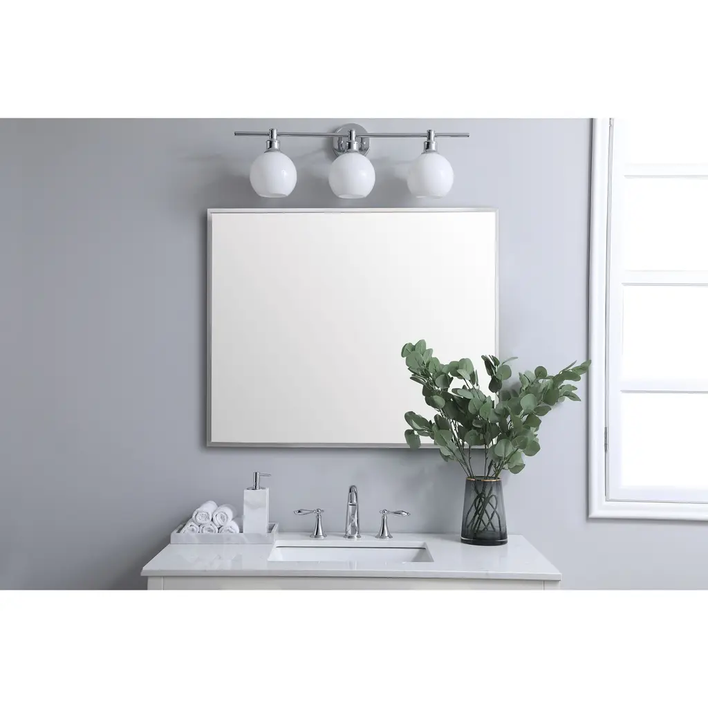 Enhance the contemporary appeal of your living space with our aluminum rectangle mirror. This versatile piece offers a modern aesthetic with its sleek metal-framed design and clean lines, adding a touch of sophistication to any room. The mirror's electroplated finish not only provides a subtle shine but also ensures durability. Its clear, non-beveled mirror surface delivers a pristine reflection, making it perfect for a variety of applications. The mirror can be effortlessly hung either horizontally or vertically, thanks to the attached metal cleats, allowing you to customize its placement to suit your space. Supported by a strong MDF backing, this mirror combines style with sturdiness, and its lightweight nature makes installation a breeze. Elevate the ambiance of any room with this chic and functional aluminum mirror.